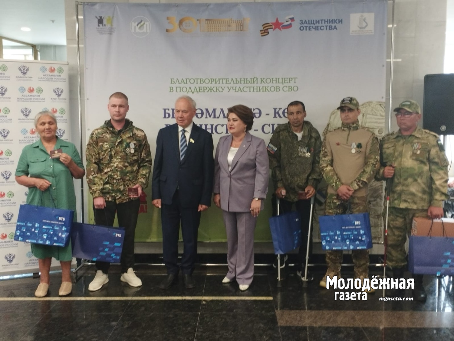 На концерт «В единстве – сила!», который прошел 17 июня в Государственном концертном зале «Башкортостан», пришли ветераны спецоперации, семьи погибших бойцов, волонтеры и приглашенные гости. Билеты для военнослужащих и их родных приобрели депутаты Госсобрания. Собранные средства и пожертвования будут отправлены на поддержку СВО.