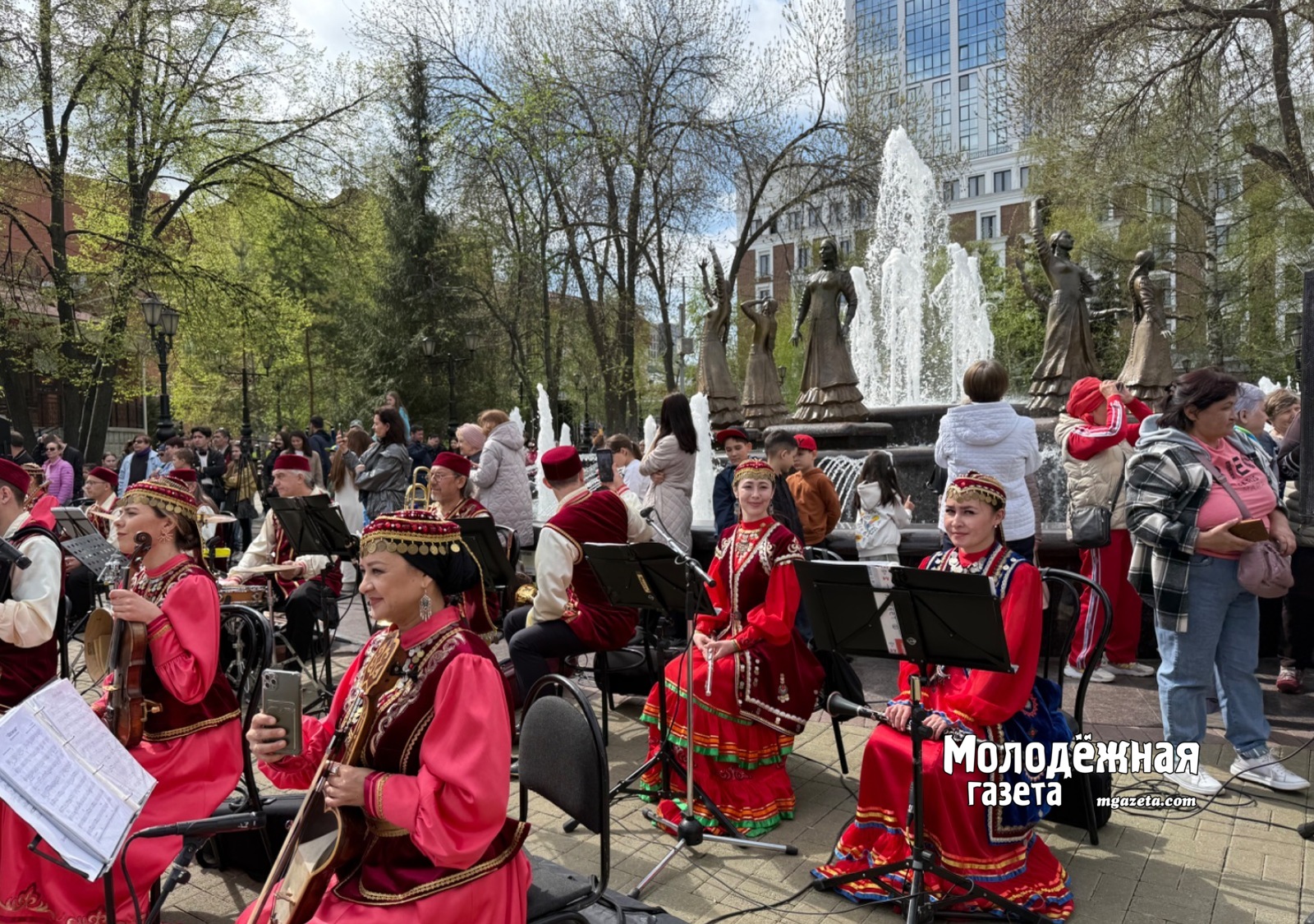 А фонтан«Часы» на площади Ленина встретил весну богатой программой: от классической музыки до народных танцев.