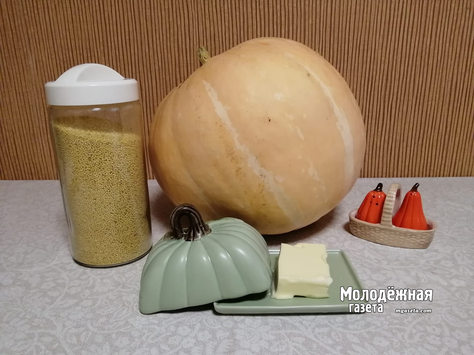 Ингредиенты на 3 порции: пшено - 1 стакан, тыква - 350 г, вода - 750 мл, соль - 0.5 ч. л., масло сливочное – 100 г, сахар - по вкусу.