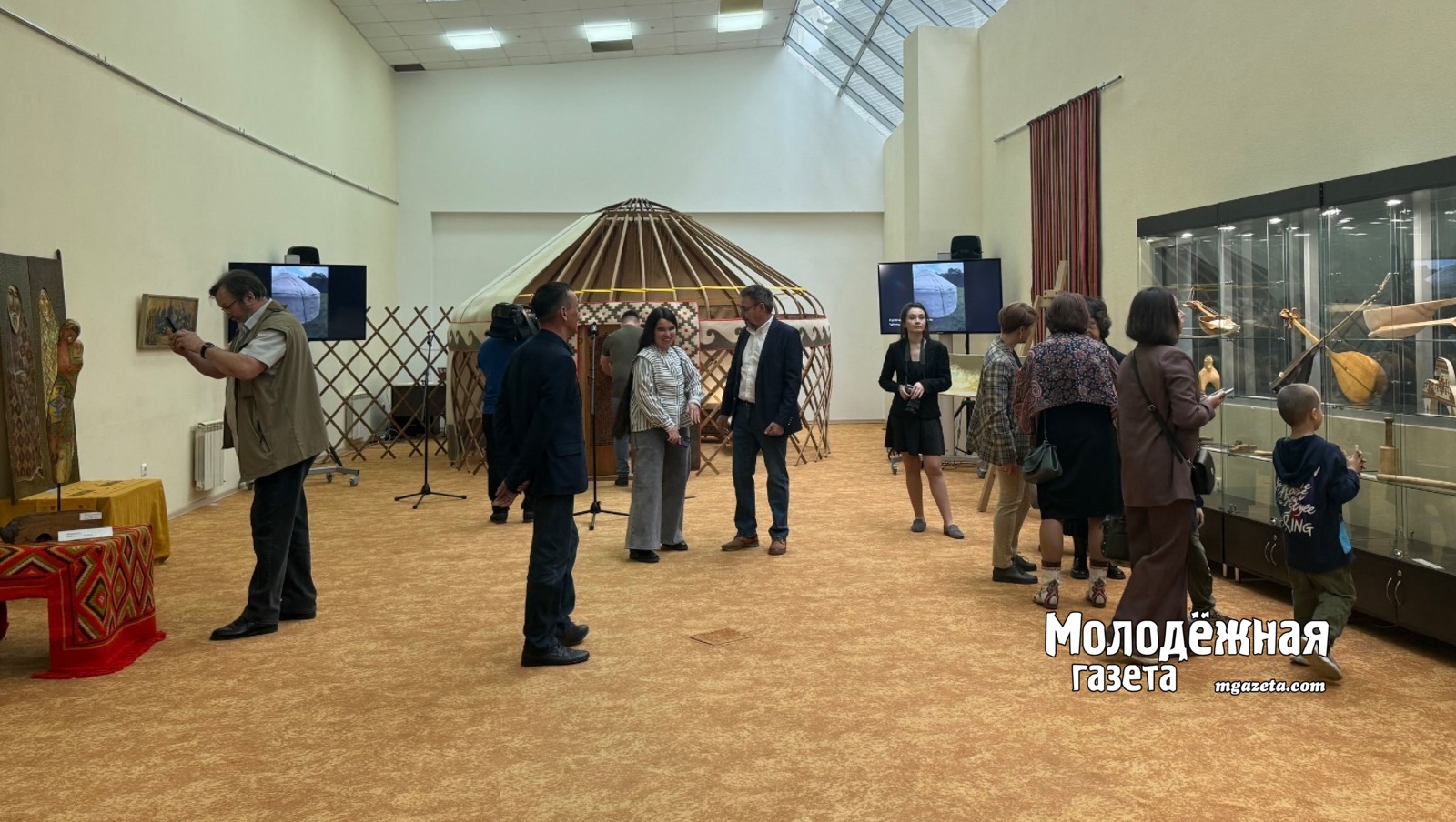 В выставочном зале конгресс-холла «Торатау» светло и просторно, как на просторах нашей любимой республики. На стенах резьба и роспись по дереву. Кроме панно есть и расписанные створки дверей юрт.