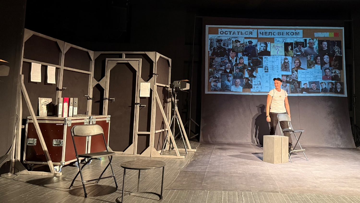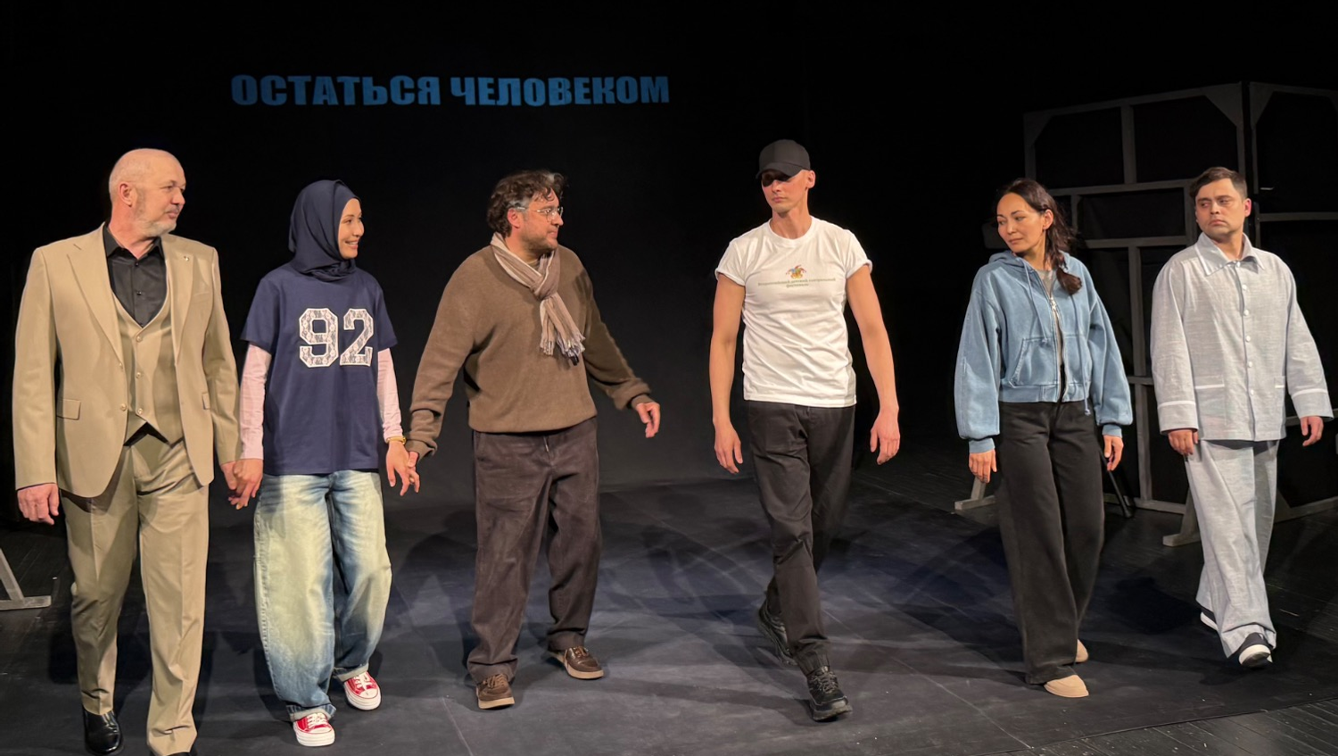 На этом фоне панциря «привыкания» к теме СВО спектакль «Остаться человеком» смотрится, как пронзительная вспышка откровения, на одном дыхании и с постоянным комом в горле. Многие в зале не могли сдержать слез. Причем в пьесе не было сцен войны, героической патетики и монологов в стиле «ура-патриотизма». Но персонажи этой истории такие НАСТОЯЩИЕ, что ты начинаешь видеть ужасы бомбежек Луганска их глазами и искренне понимаешь и принимаешь решение главного героя Артема Егорова, артиста с позывным Сказочник (Азат Валитов), уйти на фронт.