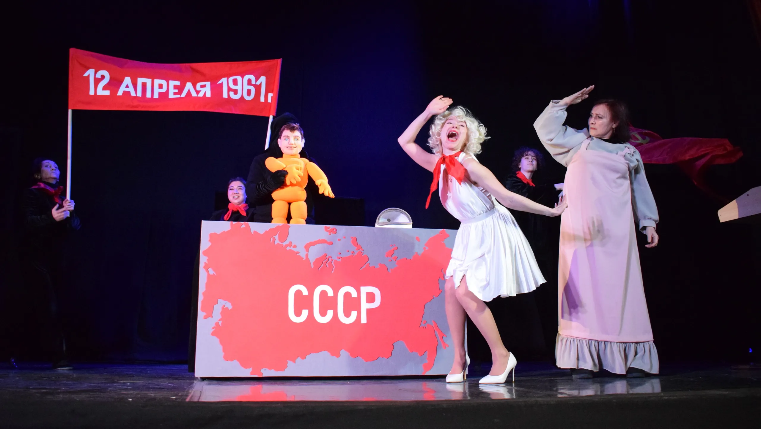 Башкирский государственный театр кукол представил после антракта на сцене целую сагу о Юрии Гагарине и СССР. И даже восхищенную первым космонавтом Мэрилин Монро в пионеры приняли.
