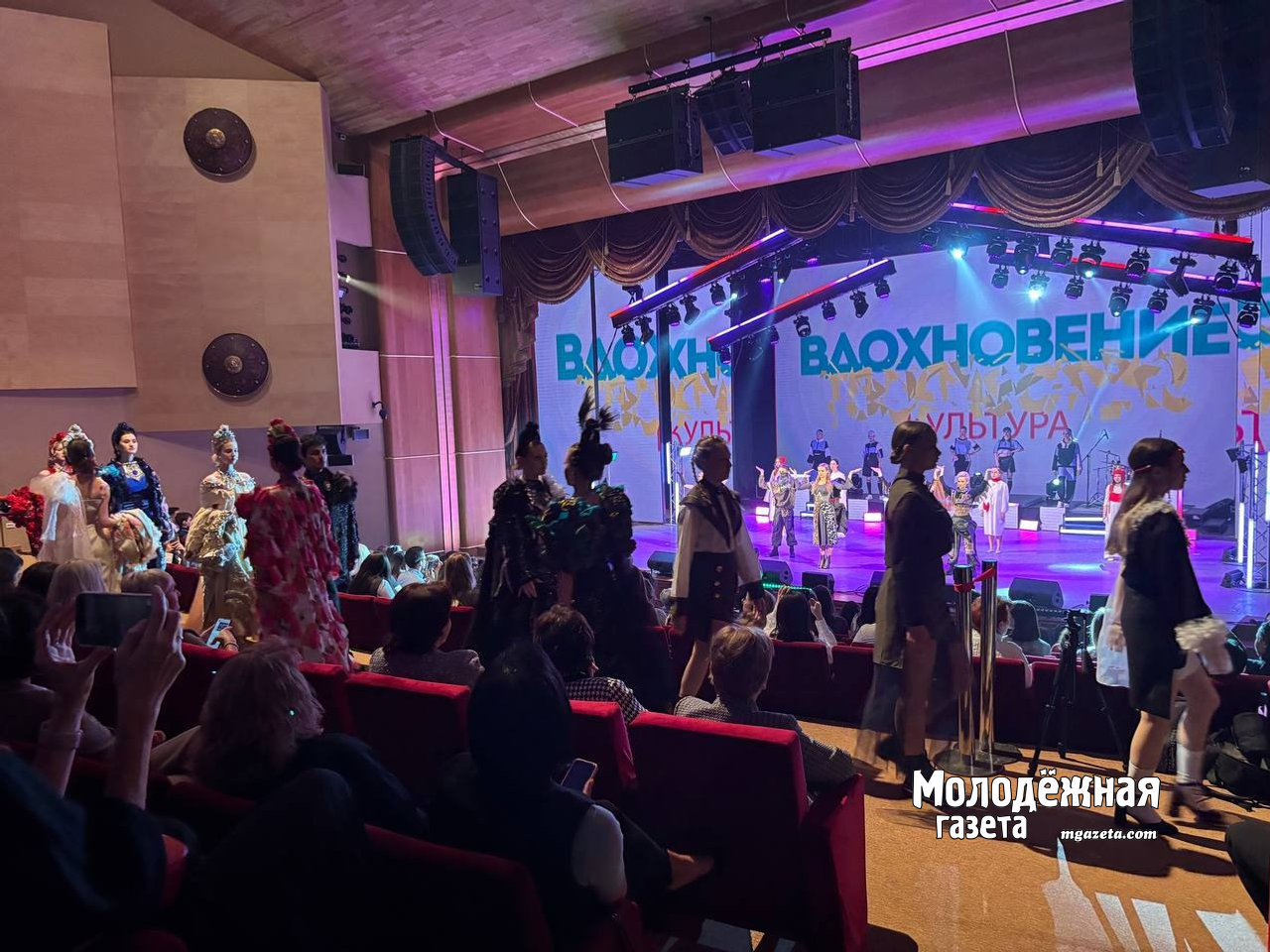 Ребята выходили со сцены и дефилировали между рядами в зрительном зале в королевских нарядах, платьях с крыльями, в смелых образах, пели, битбоксили и играли на барабанах. В ответ зал не умолкал ни на секунду: зрители в восторге кричали, громко аплодировали, топали и поддерживали свои институты.