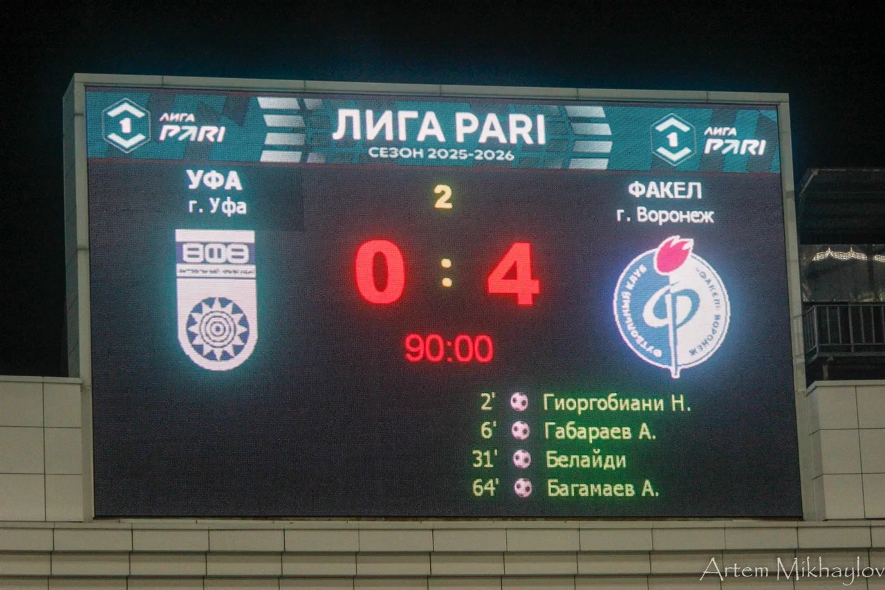 «УФА» (Уфа) – «ФАКЕЛ» (Воронеж) – 0:4 (0:3).