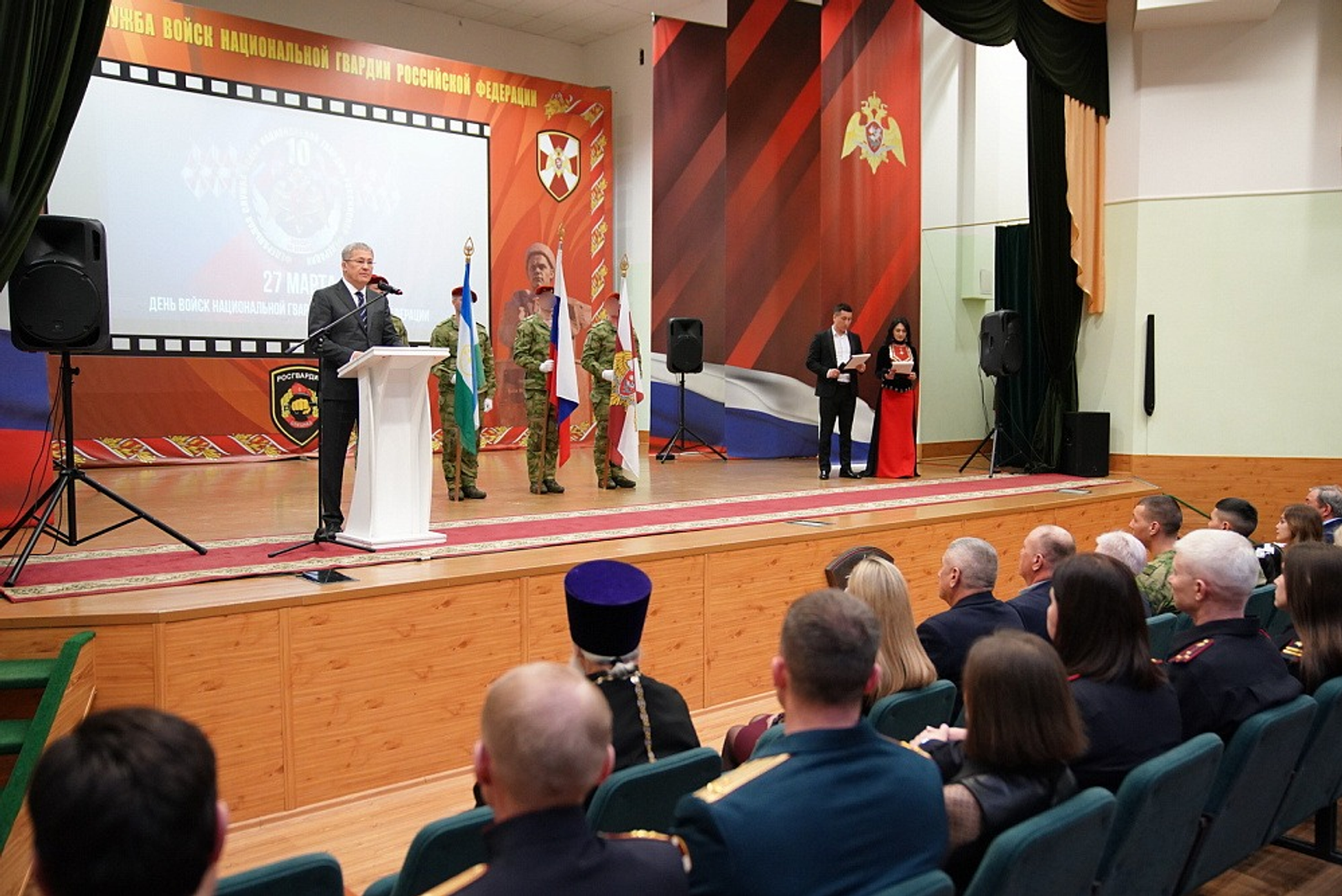 В своем выступлении Радий Хабиров подчеркнул, что Росгвардия является надежной опорой безопасности страны и ее граждан, а мужество, добросовестная служба и верность долгу сотрудников вызывают глубокое уважение. Особые слова благодарности он адресовал ветеранам, чей боевой опыт и самоотверженность служат важным примером для нынешнего поколения. Глава республики отметил, что память о погибших при выполнении боевых задач навсегда останется в сердцах.