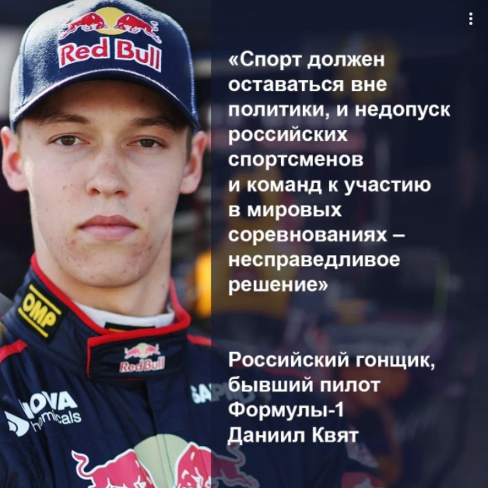 Пилот «Формулы-1» уфимец Даниил Квят отказался выступать без национальной символики в чемпионате мира по гонкам на выносливость и в любых других соревнованиях Международной автомобильной федерации. Даниил просто-напросто не стал подписывать документы. Квят подчеркнул, что спорт должен оставаться вне политики. Спасибо, Даниил!
