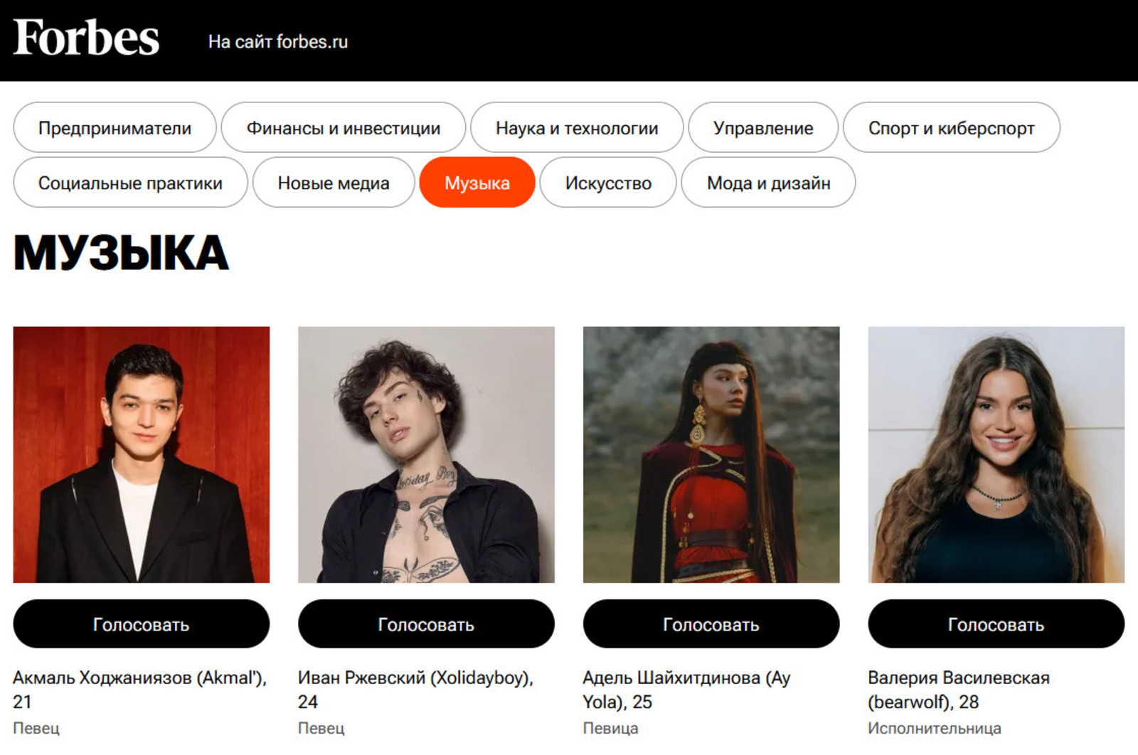 Forbes отмечает, что попадание в рейтинг «30 до 30» — признание профессиональных достижений и влияния на индустрию. Голосование проходит на официальном сайте издания.