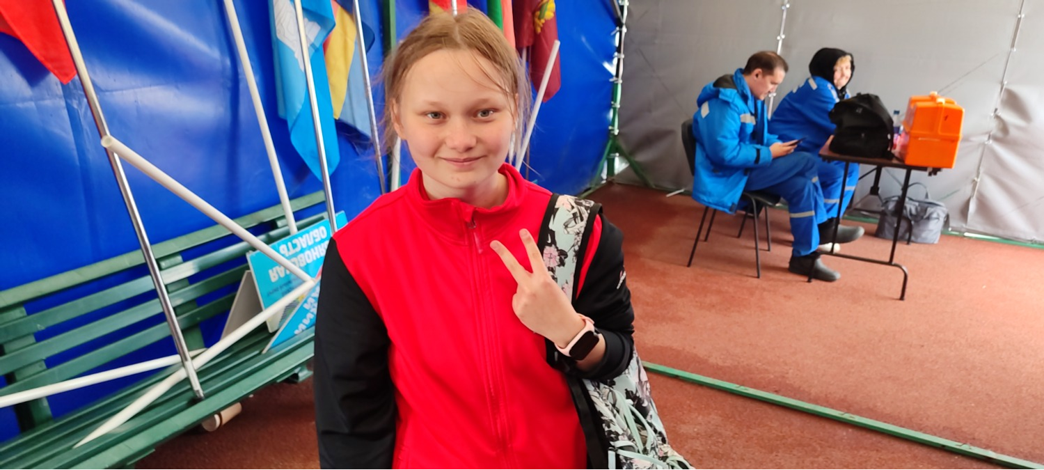 Кузмина Виктория приехала из Чебоксар, ей 15 лет. Она толкнула ядро на 8 метров 41 сантиметр и стала чемпионкой России в своей категории.