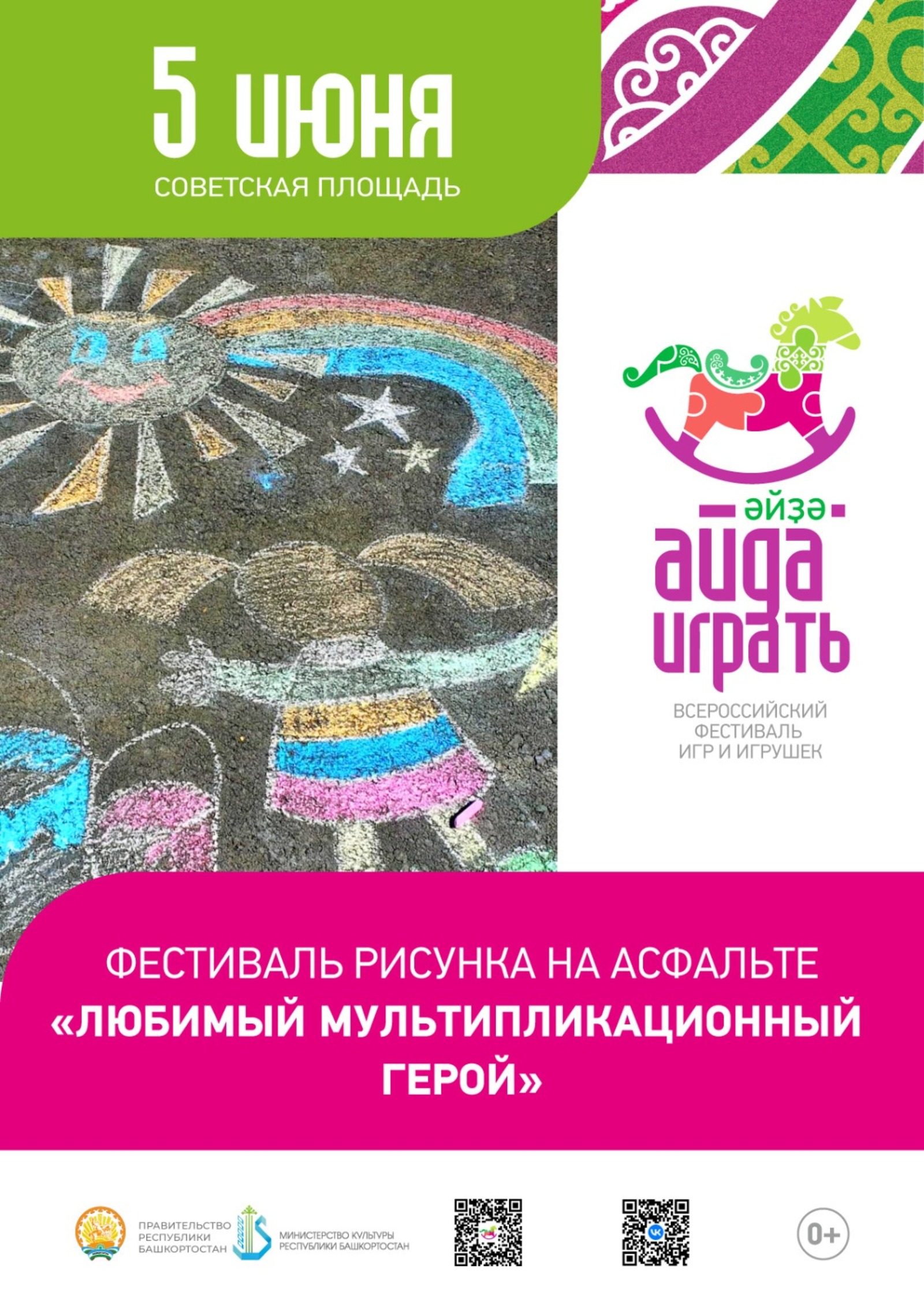 В рамках фестиваля «Айда играть» 5 июня на Советской площади состоится детский фестиваль рисунков на асфальте под названием «Любимый мультипликационный герой».