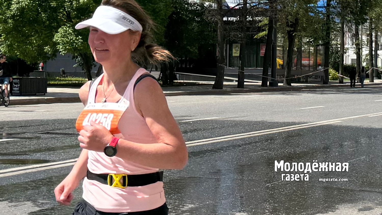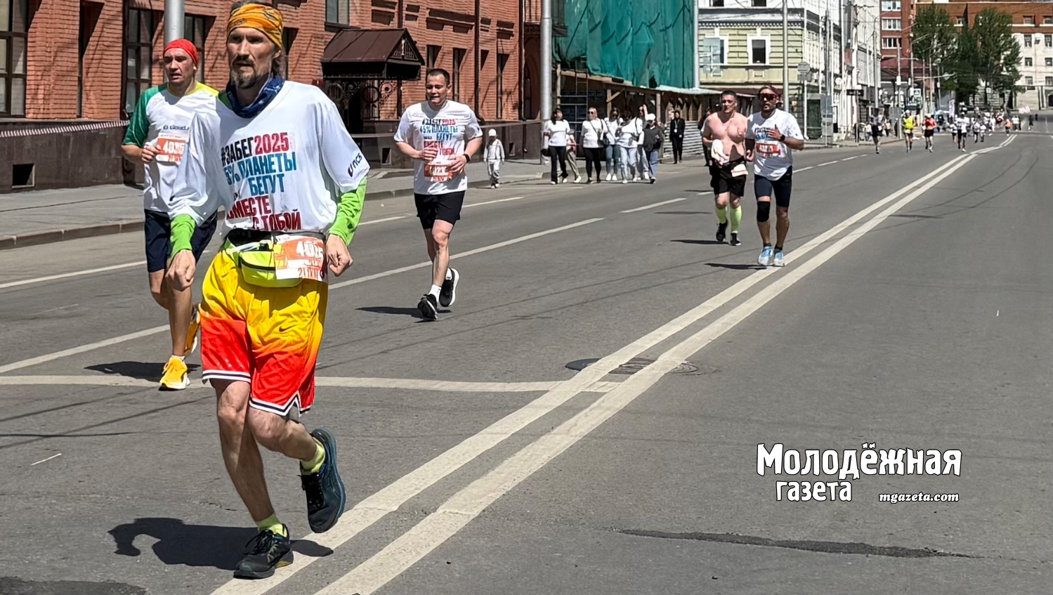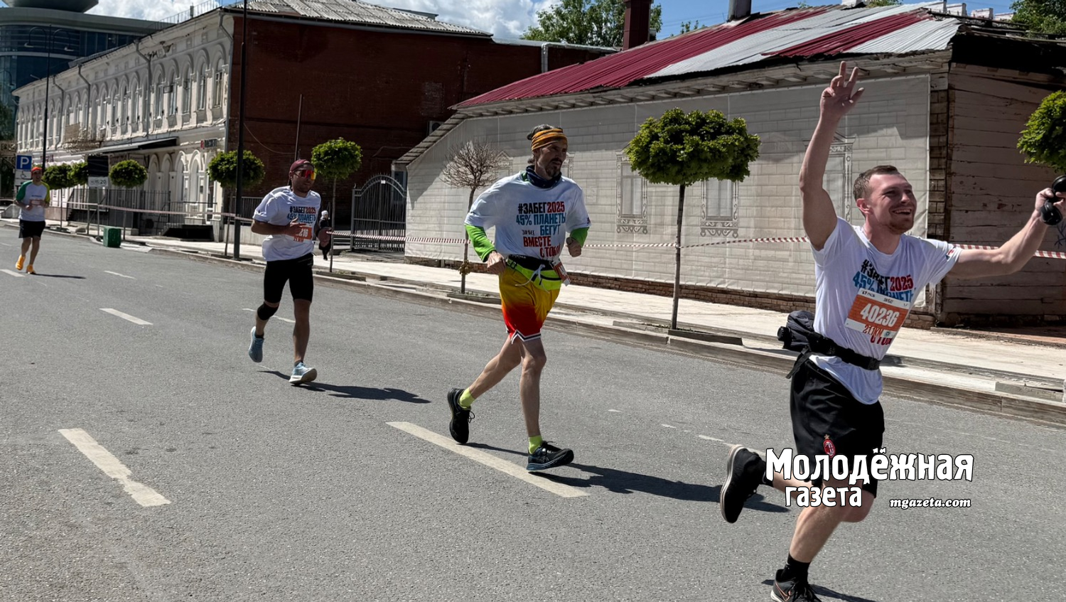А вот на улице Коммунистической, недалеко от здания УУНиТ, стояла поливальная машина и легким фонтаном охлаждала бегущих. Кто-то с удовольствием подбегал поближе, кто не хотел потом бежать мокрым— обходил дождик.