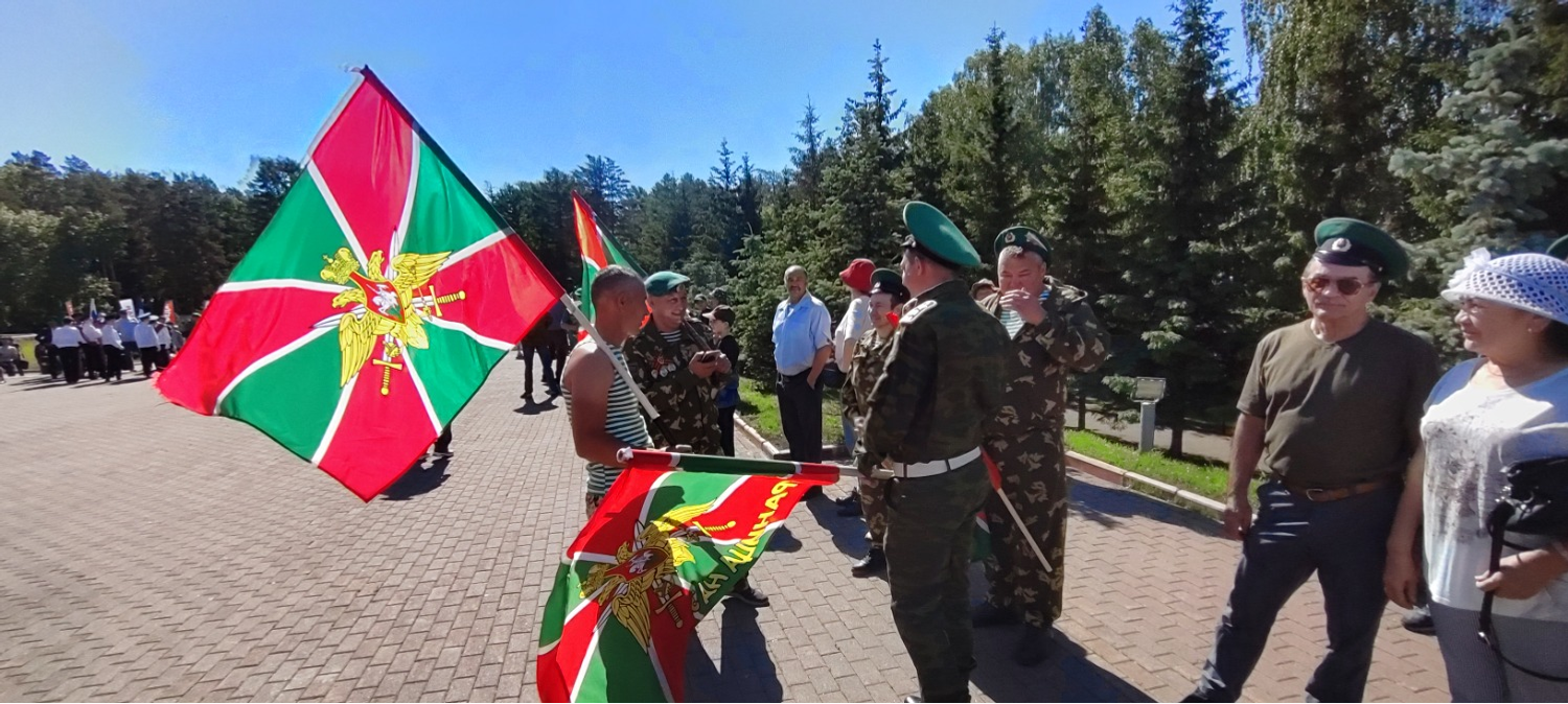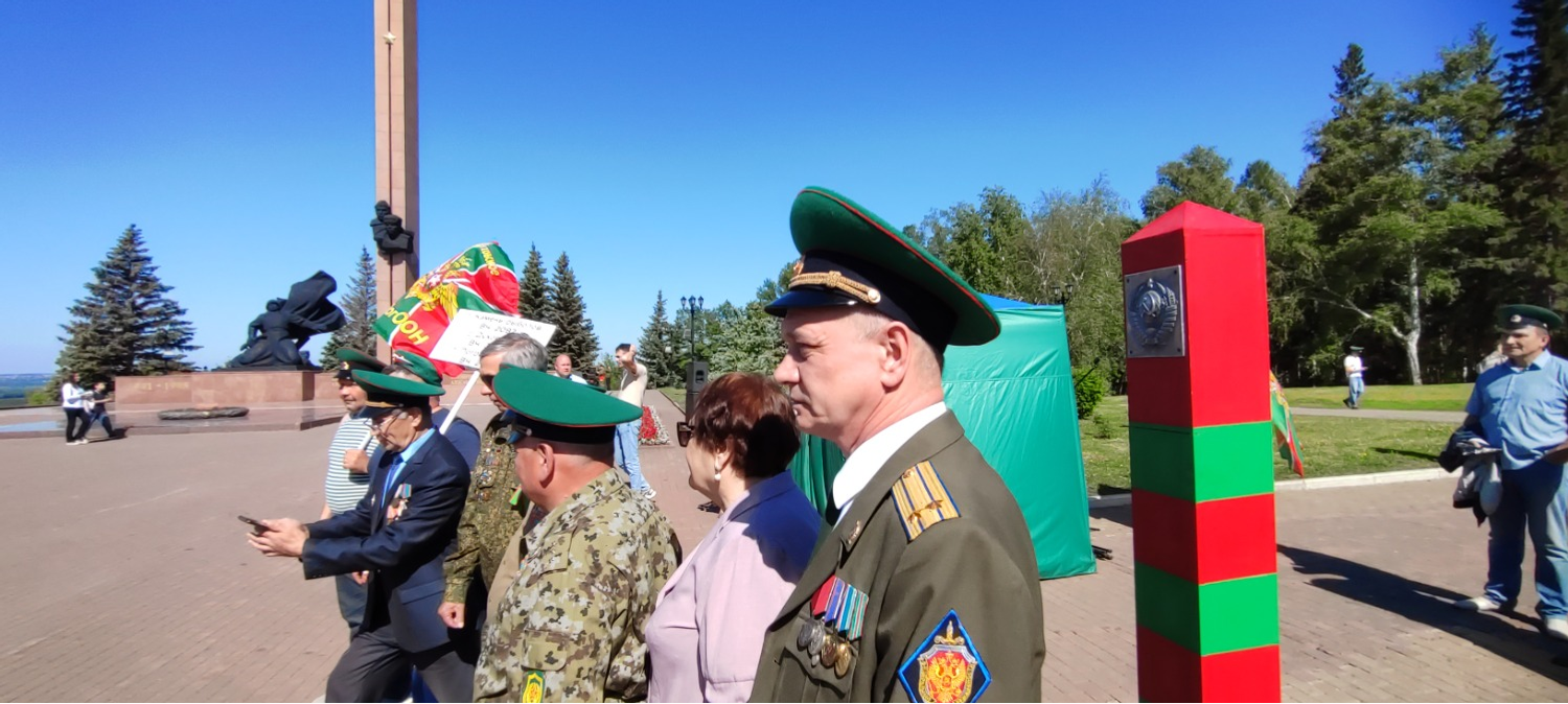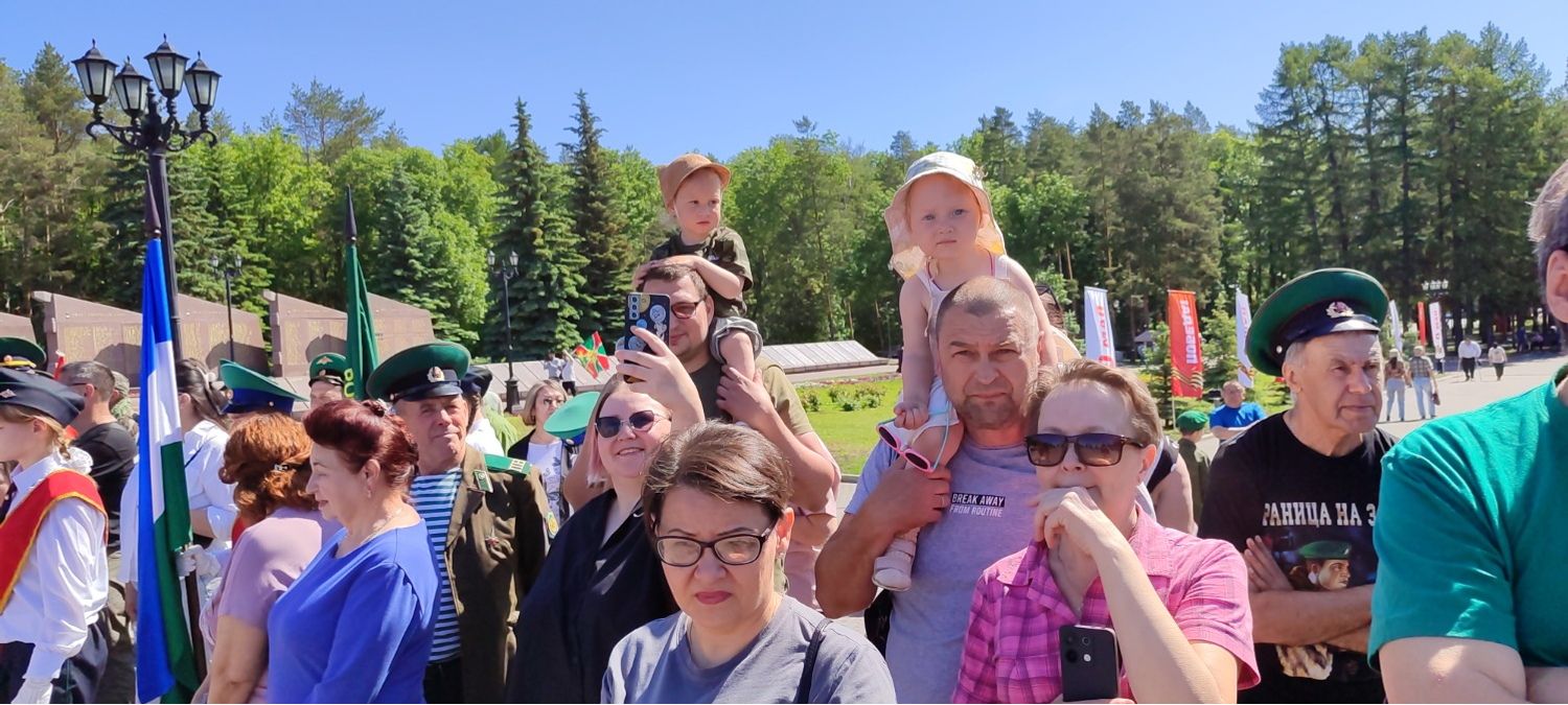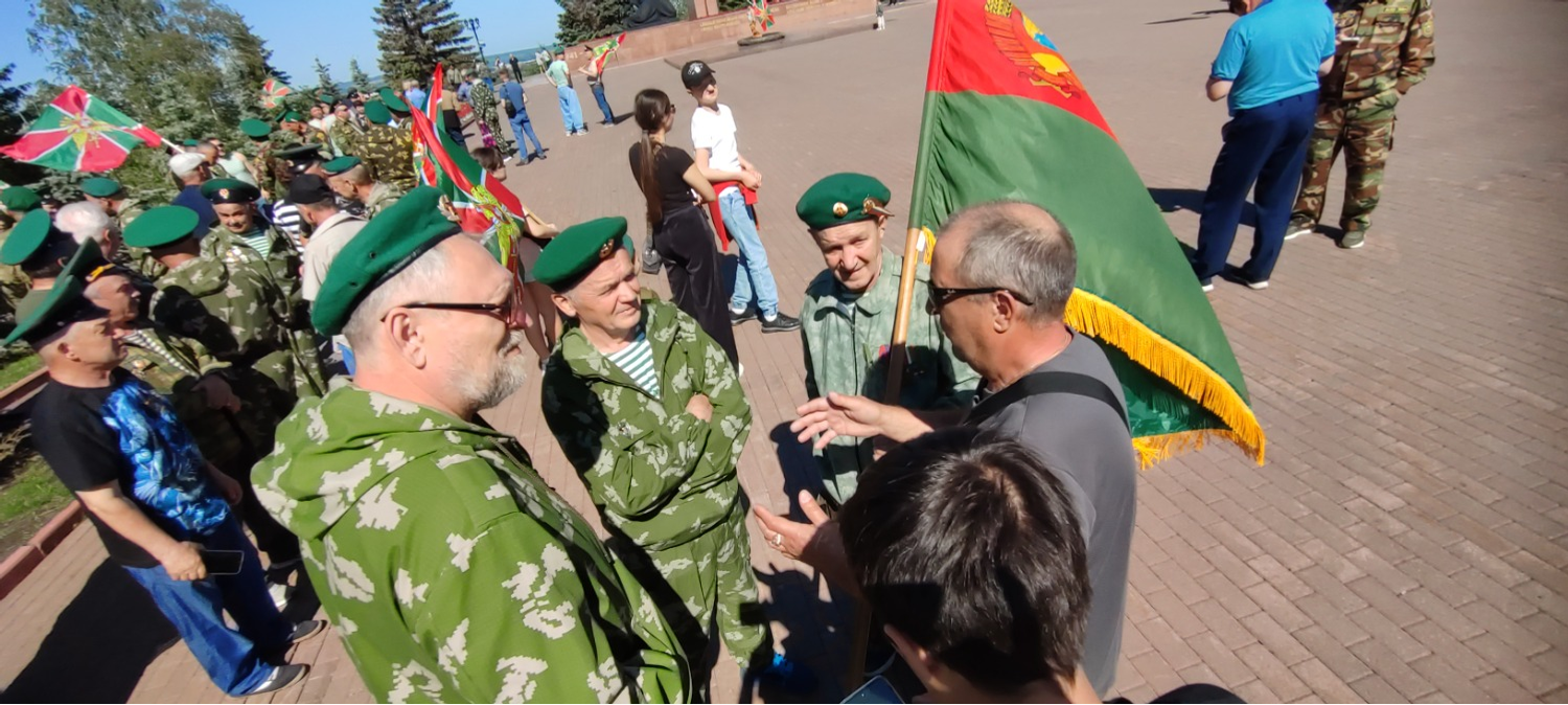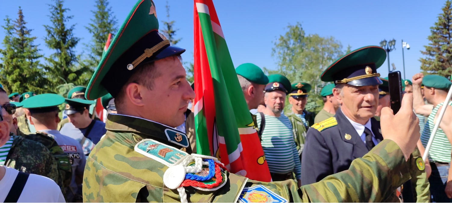 Утро, 11.00. Звучат фанфары. По периметру площадки перед Вечным огнем начато построение. На праздник прибыли около тысячи ветеранов пограничных войск, присутствуют почетные гости, кадеты, родственники.