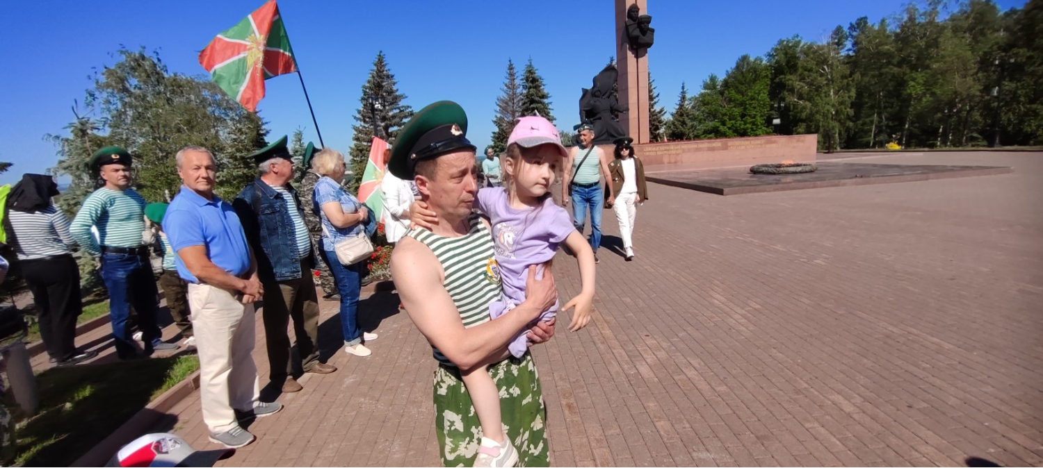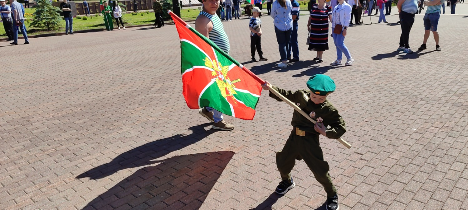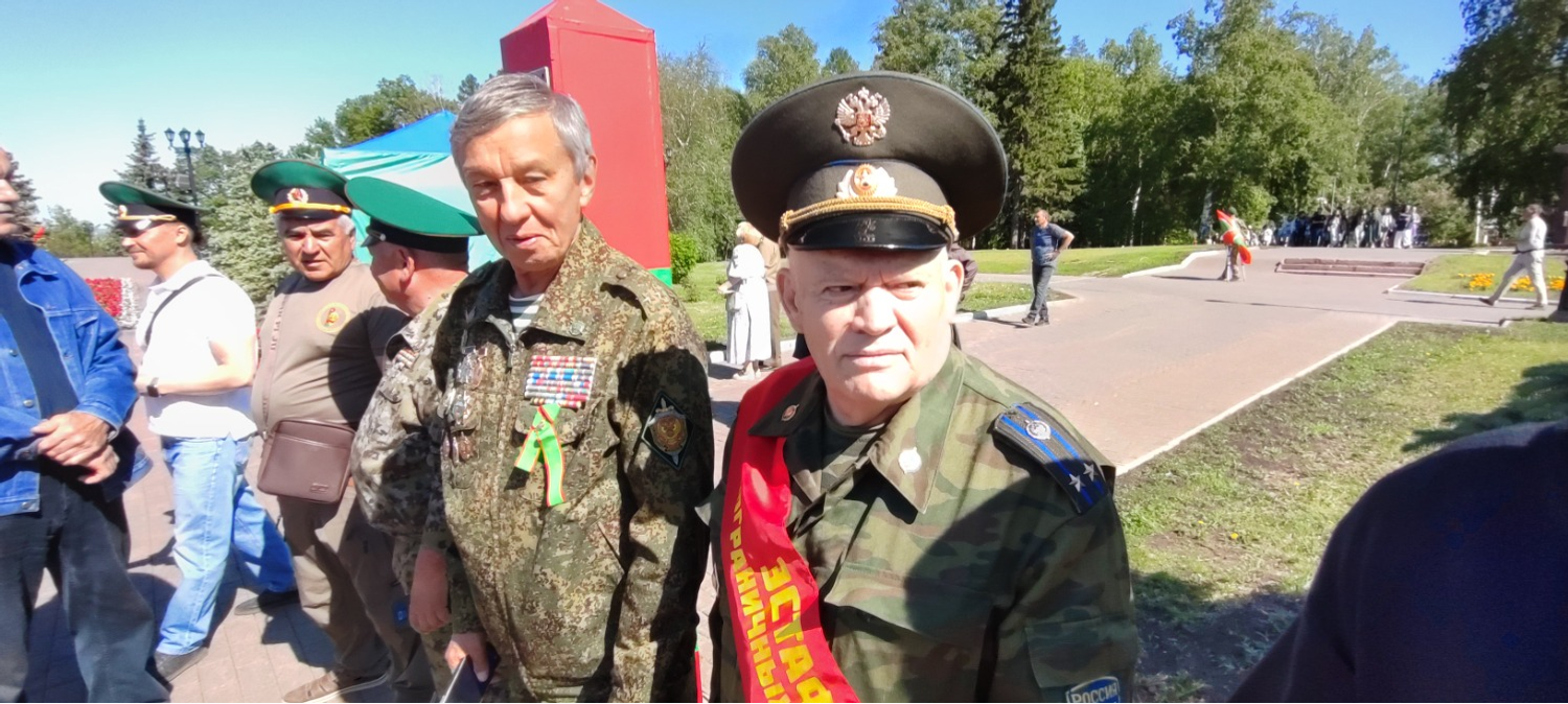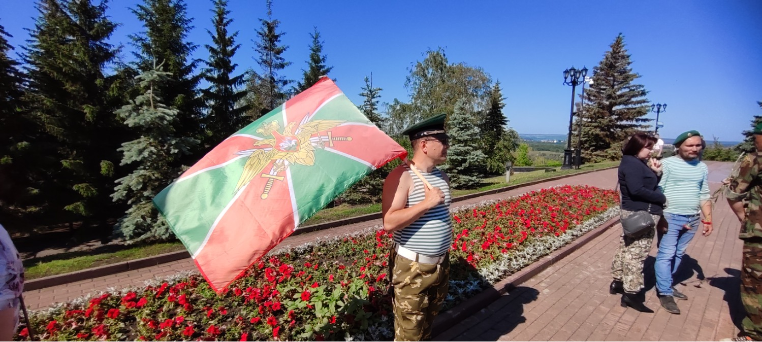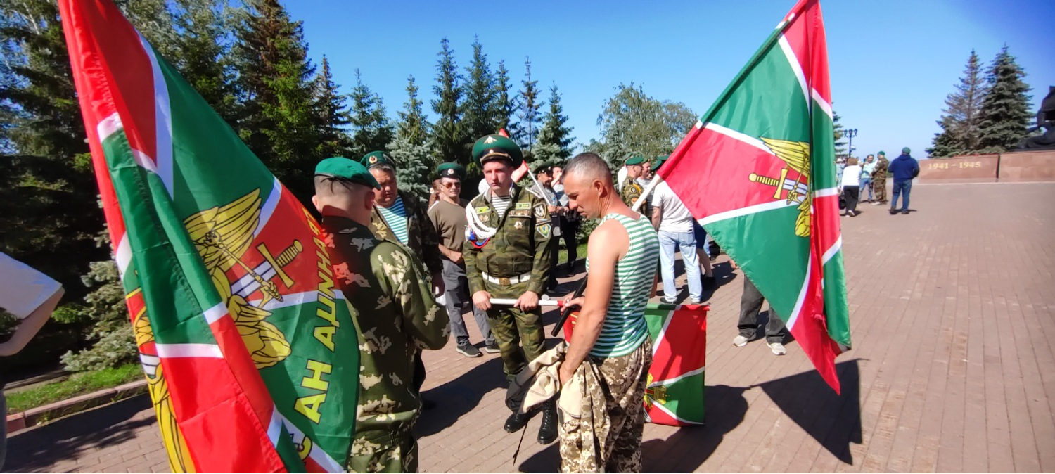 Утро, 11.00. Звучат фанфары. По периметру площадки перед Вечным огнем начато построение. На праздник прибыли около тысячи ветеранов пограничных войск, присутствуют почетные гости, кадеты, родственники.