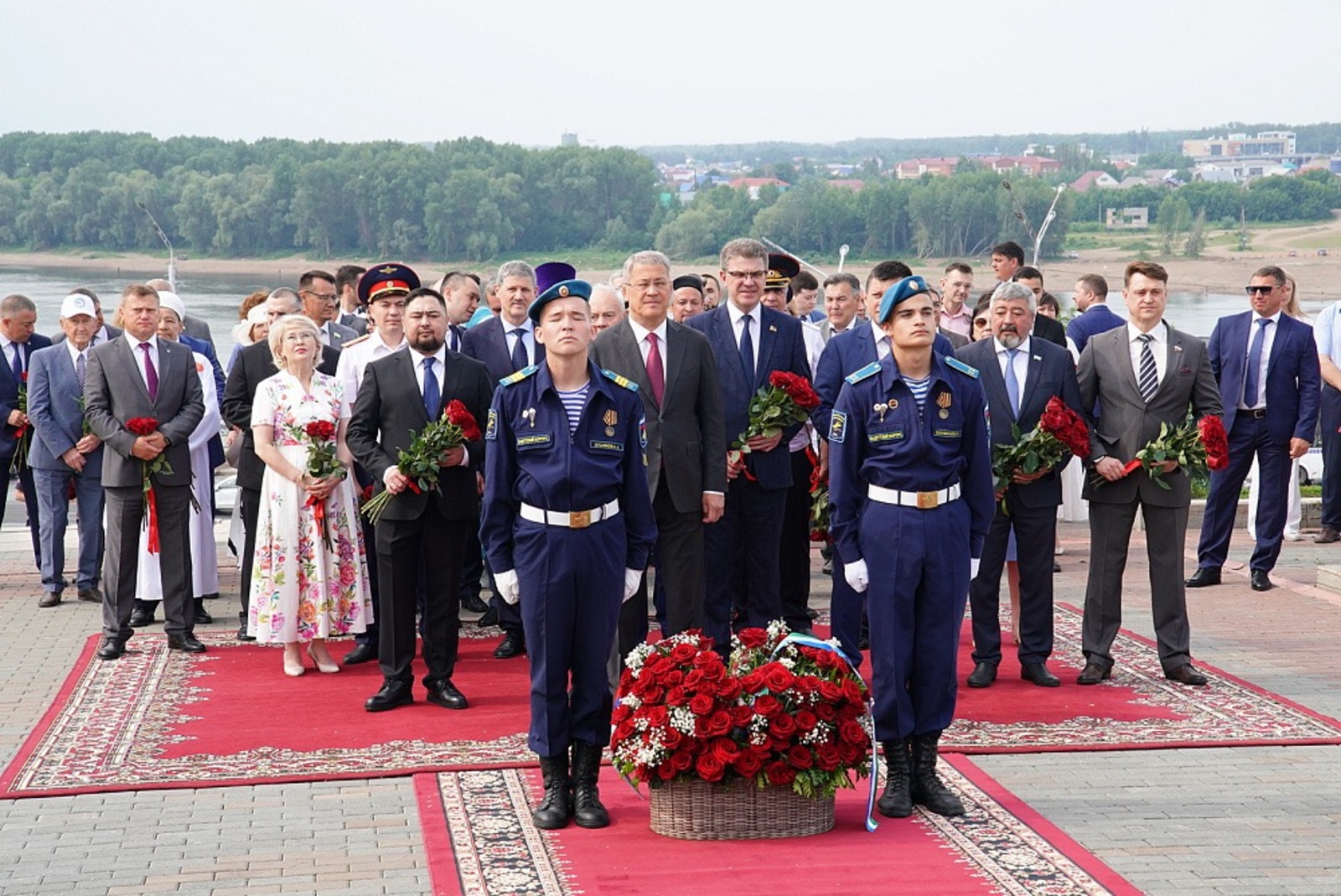Глава Башкирии возложил цветы у Монумента Дружбы, установленного в честь 400-летия добровольного присоединения Башкортостана к России. Памятник был заложен в 1957 году, а его официальное открытие состоялось в 1965-м. Он олицетворяет многовековую братскую связь русского и башкирского народов.