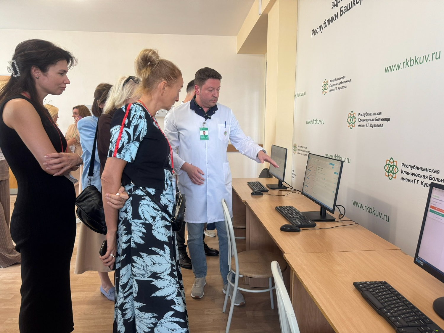 В Республиканской клинической больнице имени Куватова гостям показали цифровизацию ключевых процессов, включая корпоративный портал с интегрированными ИИ-сервисами и телемедициной. Центральная клинико-диагностическая лаборатория представила цифровую диагностическую систему, позволяющую проводить свыше 10 млн исследований ежегодно.