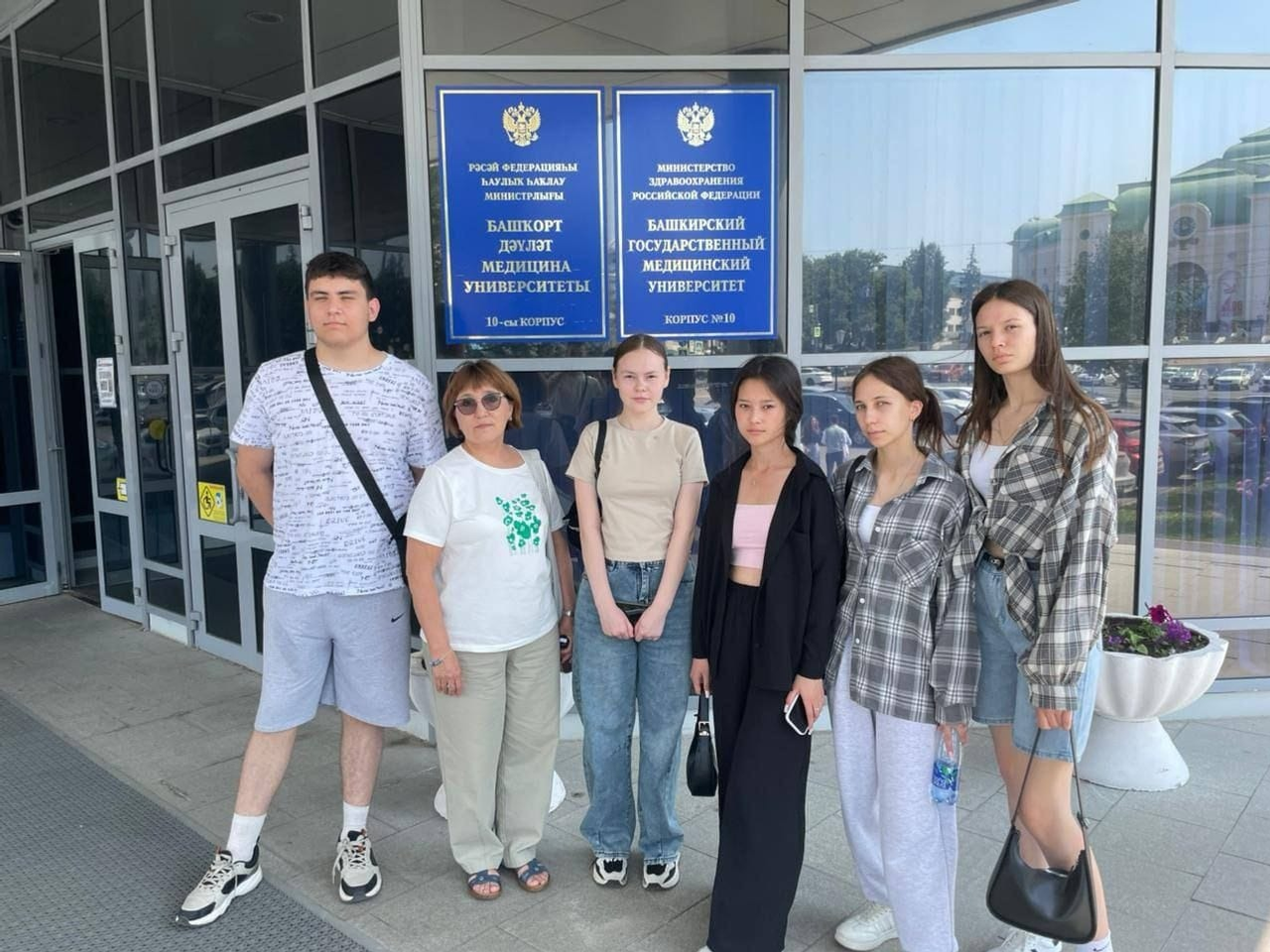 В Башкирском медицинском университете ребята познакомились с работой кафедр, клиникой глазной хирургии «Аллоплант», поработали на учебных тренажерах.