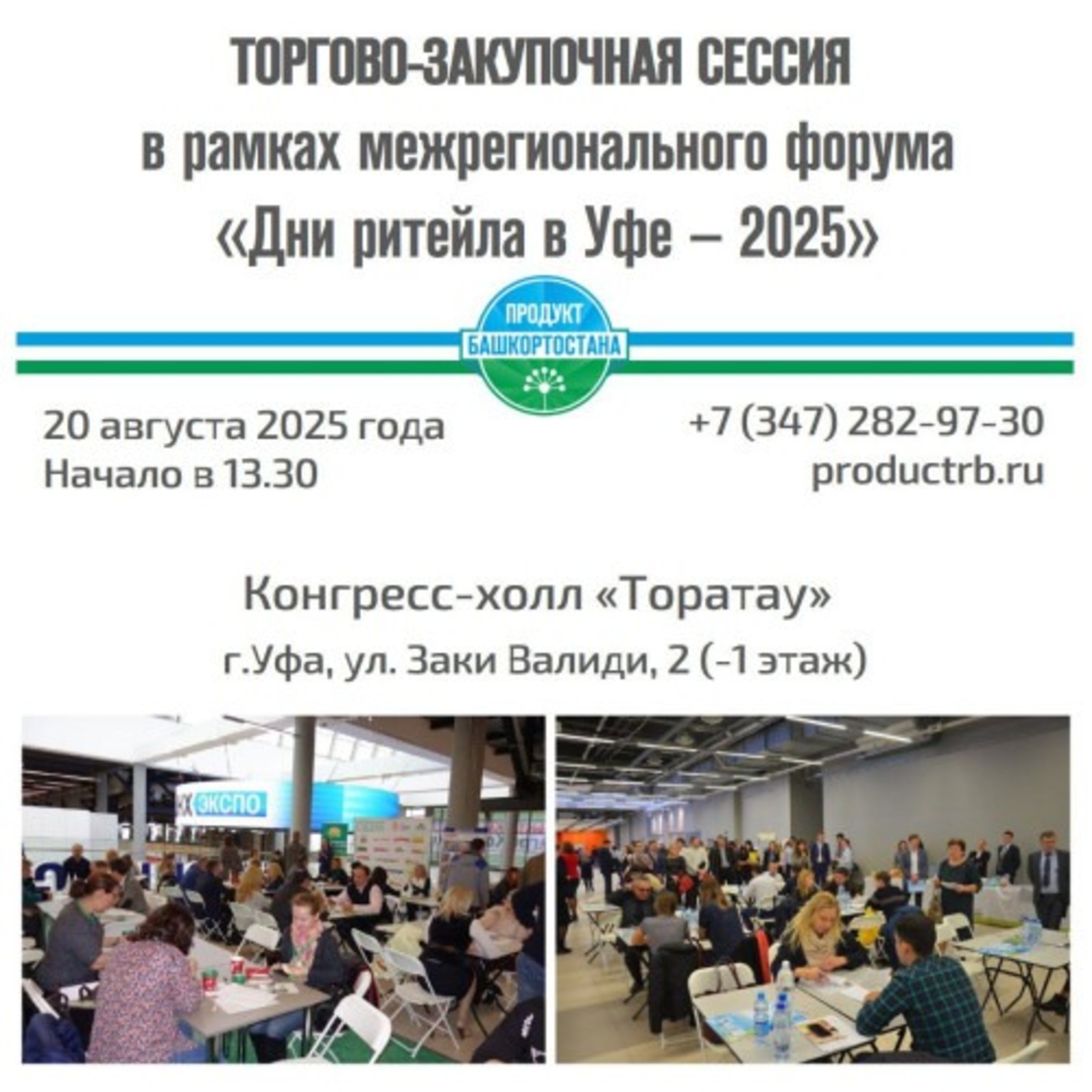 Условия участия: регистрация доступна по ссылке; контакты для связи: Светлана Павловна Дивнич, руководитель проекта «Продукт Башкортостана» – тел.: 8 (347) 282-97-30. Место проведения: г. Уфа, ул. З. Валиди, 2, конгресс-холл «Торатау», 1 этаж.