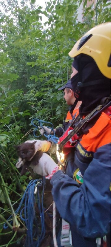 Первый сигнал поступил от жителей дома на улице Николая Дмитриева. Целые сутки они слышали душераздирающие крики, доносившиеся из-под земли. Оказалось, что в колодец провалился маленький котёнок, а его мама-кошка безутешно металась рядом. На помощь пришёл поисково-спасательный отряд. Специалисты с использованием альпинистского снаряжения спустились в шахту и благополучно подняли малыша на поверхность.