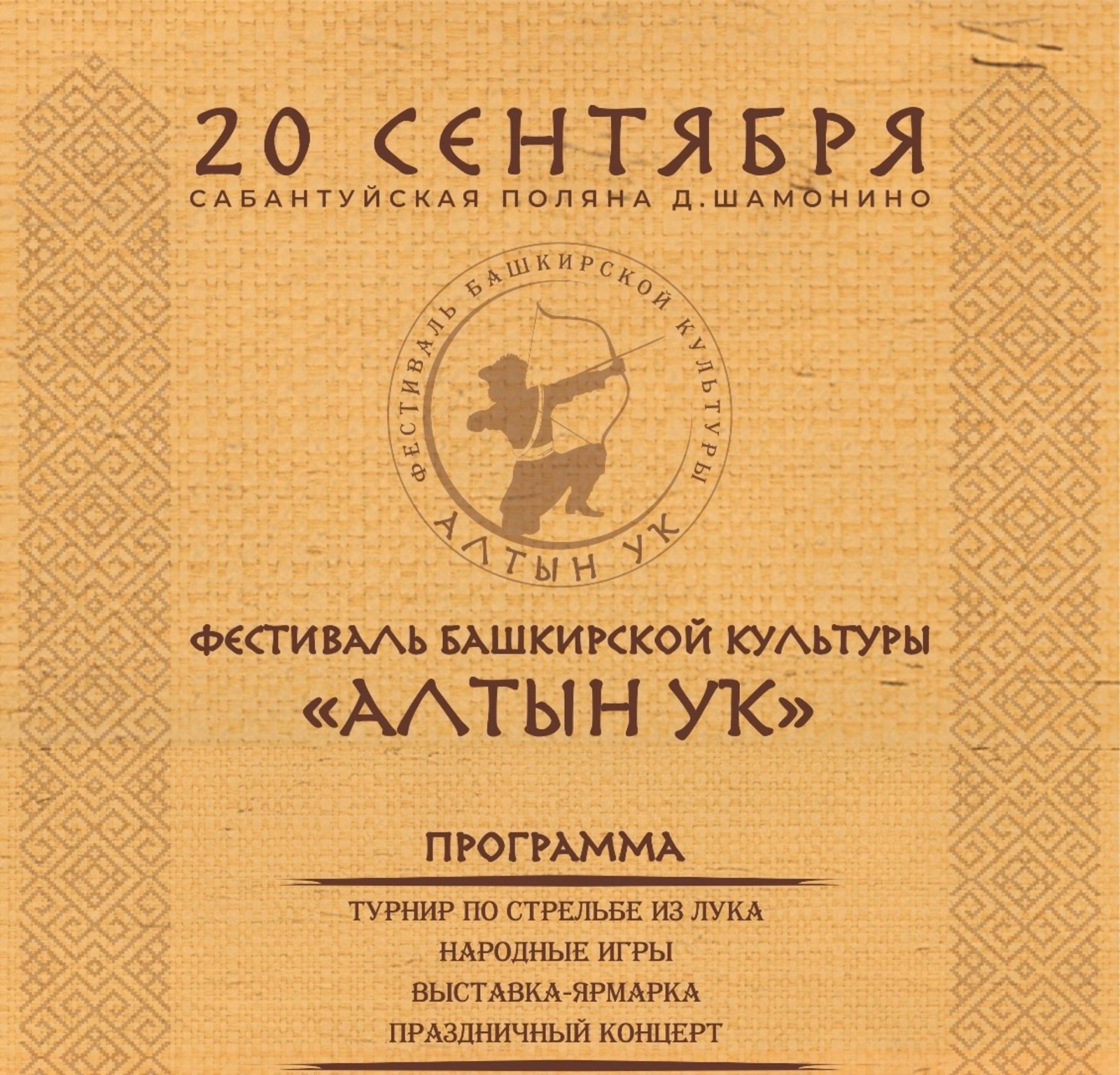 Мероприятие соберет около 70 лучников из Башкортостана, Татарстана и Челябинской области, которые выступят в национальных костюмах. Гостей ждут соревнования по стрельбе из традиционного лука, выставка в башкирской юрте, мастер-классы по фланкировке шашкой и народным играм, а также чемпионат по стрельбе из рогатки для детей. Завершится фестиваль дегустацией национальных блюд в юрте гостеприимства.