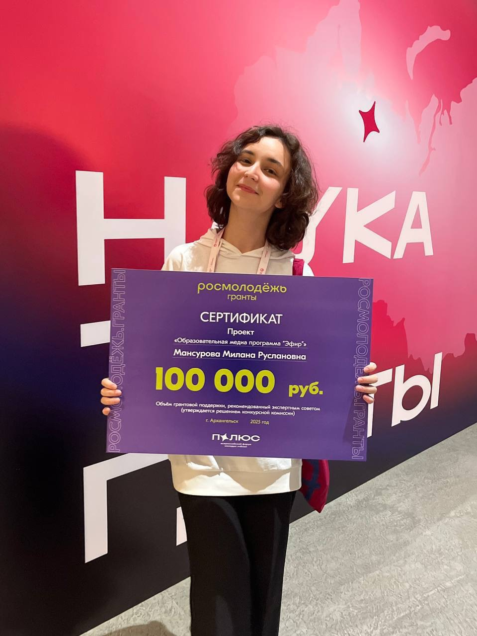 Отличились представители Башкирии и на форуме молодых учёных «Полюс» в Архангельской области. Милана Мансурова получила 100 000 рублей на образовательную медиа-программу «Эфир».