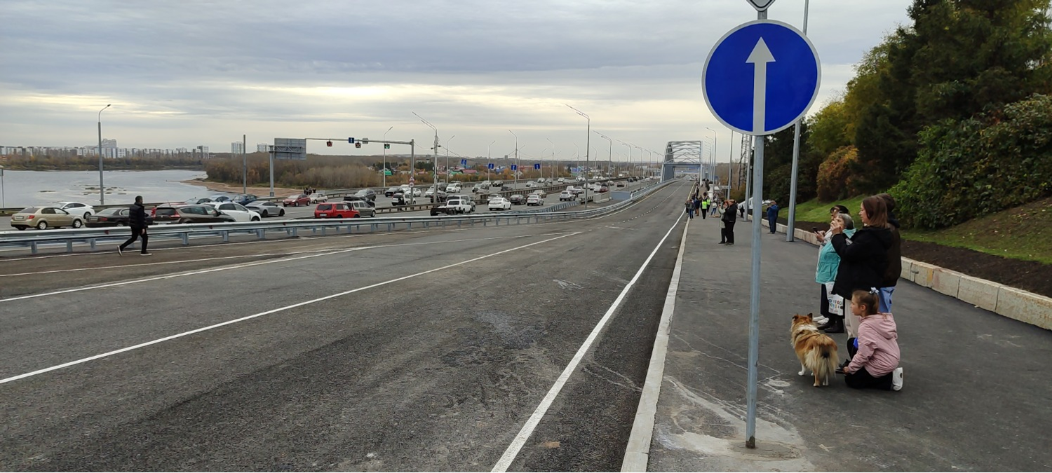 Первыми по мосту проехали сами строители. После проезда тяжелой техники по мосту прокатилась колонна советских ретроавтомобилей. Далее на новый мост устремились уфимцы и гости города. Мост красив! Было отмечено, что строители сохранили чугунное ограждение 1956 года.