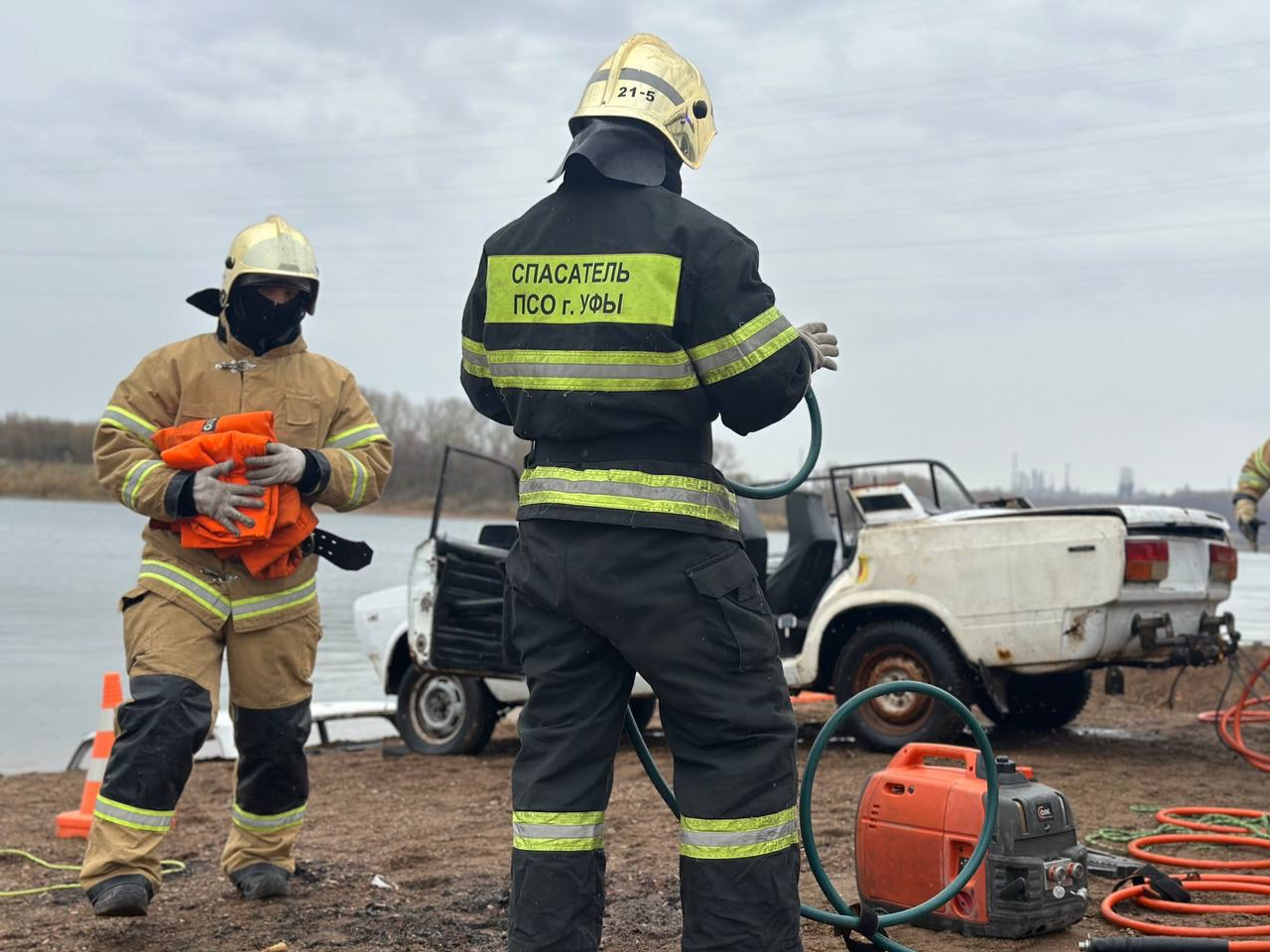 Спасатели провели масштабные учения на воде. По легенде, на Кемеровской, 114 произошло серьезное ДТП – два автомобиля столкнулись, один загорелся, а второй упал в реку Белую. Водитель оказался в воде, а пассажир – в заблокированном автомобиле под водой.