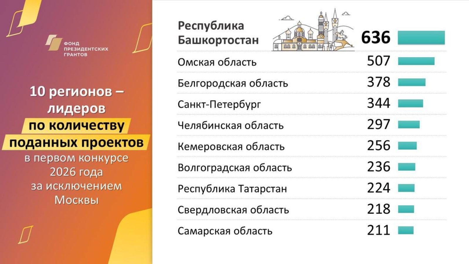 Итоги конкурса будут подведены в январе 2027 года, а уже в феврале победители смогут приступить к реализации своих инициатив. Проекты башкирских НКО охватывают широкий спектр направлений — от поддержки участников СВО и помощи студентам в подготовке к экзаменам до сохранения исторической памяти о партизанах Второй мировой войны.