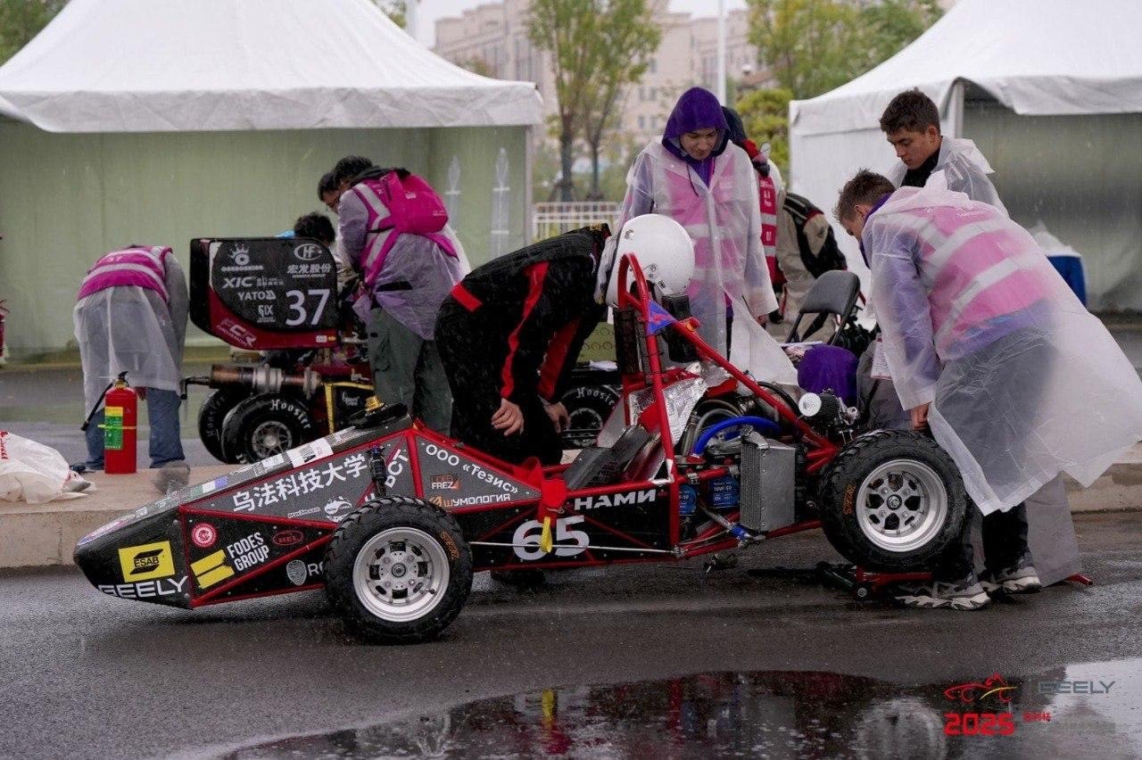 Выступление команды могло не состояться из-за форс-мажора: болид задержался на таможне и прибыл на трассу буквально за несколько часов до заездов. Благодаря оперативной помощи организаторов и коллег из других команд, которые подключили своё оборудование, ребята работали всю ночь, чтобы подготовить автомобиль. Усилия оправдались – их гоночный болид не только вышел на трек, но и показал отличный результат, заняв шестое место в рейтинге топливной эффективности. Это достижение особенно ценно, учитывая сложные погодные условия: из-за сильного дождя 10 из 40 машин сошли с дистанции.