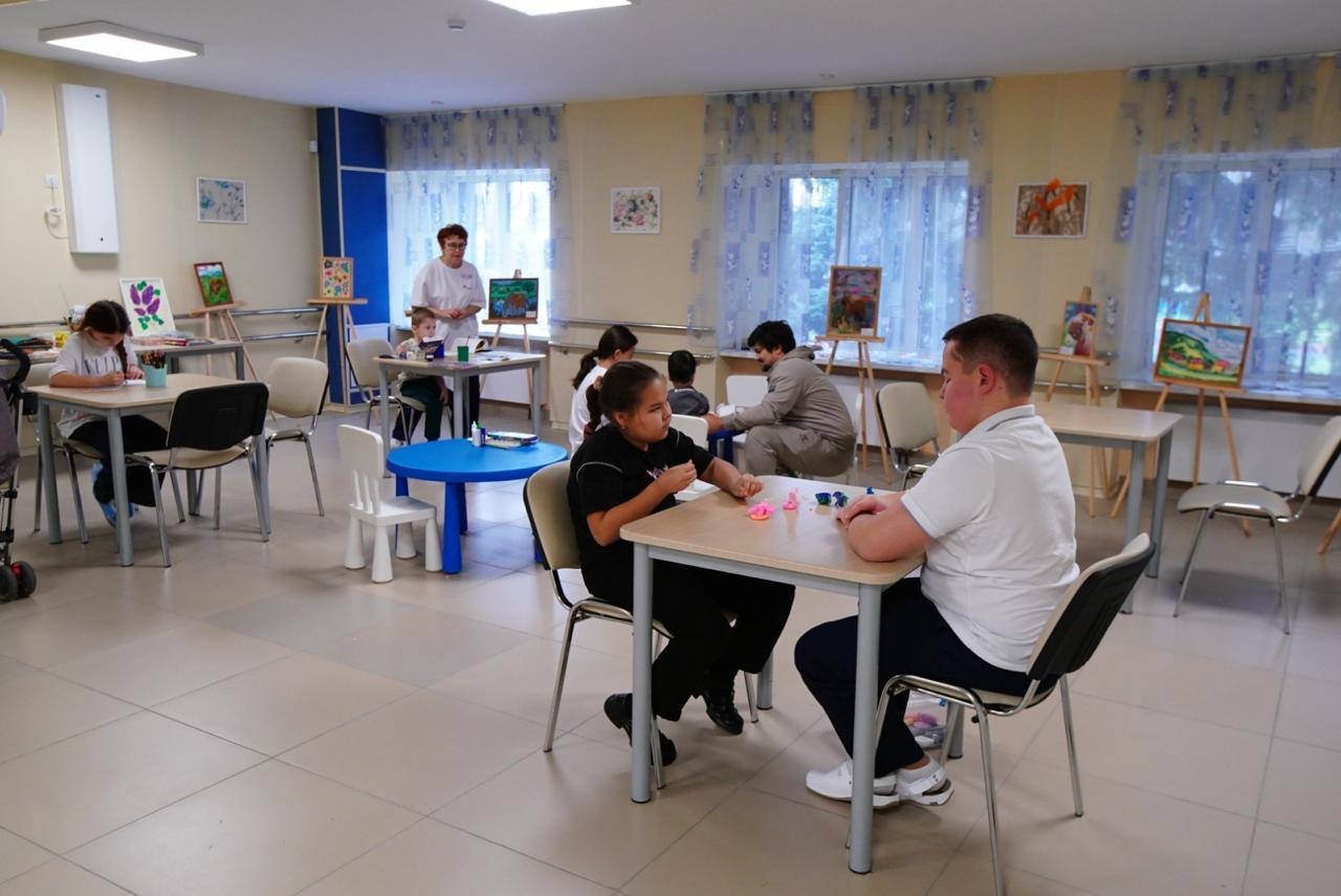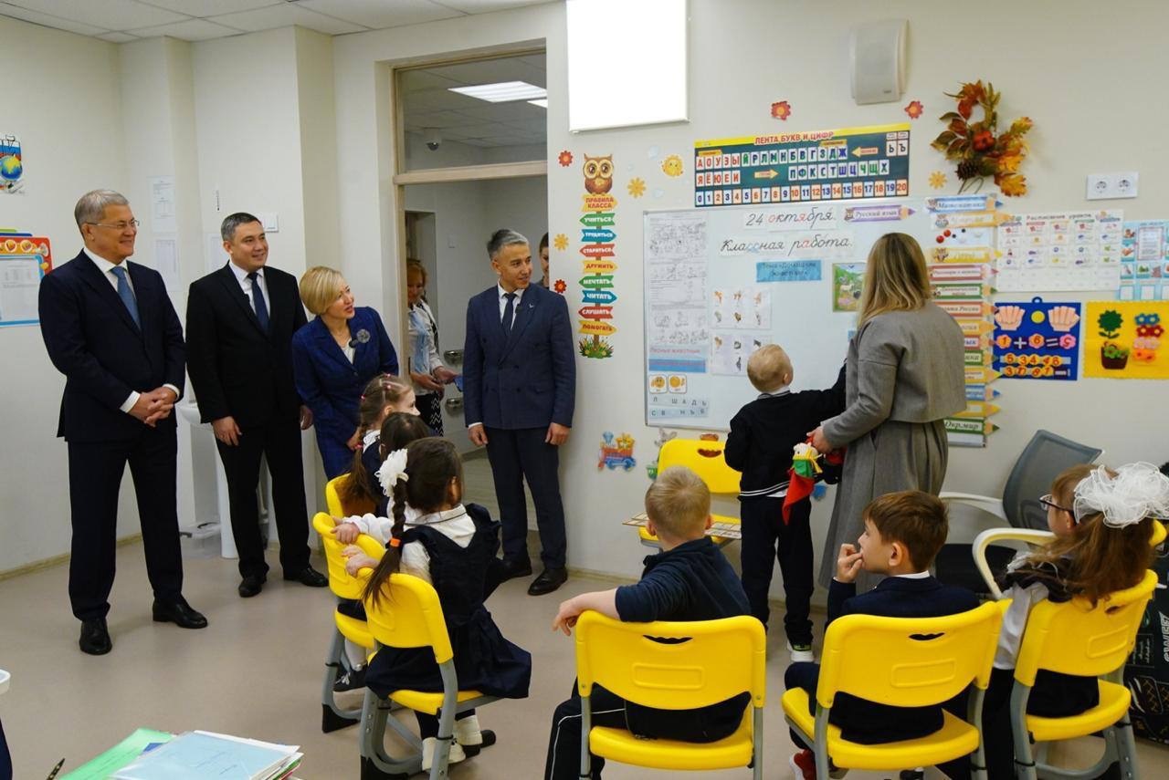 В ходе визита Радий Хабиров осмотрел различные помещения «Салюта»: столовую, мастерские, зал ЛФК, бассейн, кабинет психолога, сенсорную комнату, стоматологический блок для лечения под наркозом и учебные классы центра «Йондоз».
