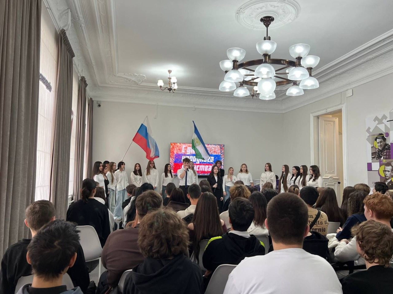 Настоящим подарком для собравшихся в зале стали выступления молодых артистов из Башкирского кооперативного техникума. Ребята покорили зал зажигательными танцами, песнями в разных стилях и проникновенным звучанием народного инструмента — курая.