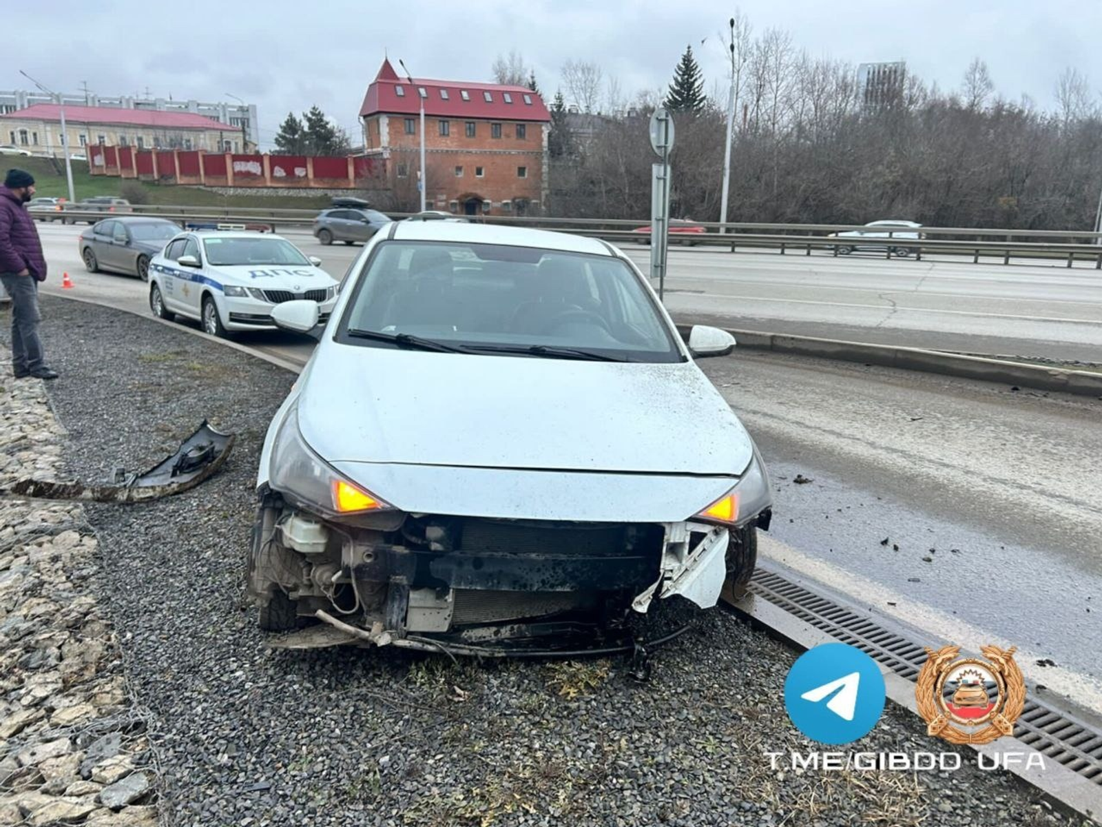 Накануне приблизительно в девять часов утра 42-летний автомобилист, управлявший автомобилем «Хендай Солярис», двигаясь по проспекту Салавата Юлаева от улицы Октябрьской Революции в направлении улицы Заки Валиди, совершил наезд на бордюр.