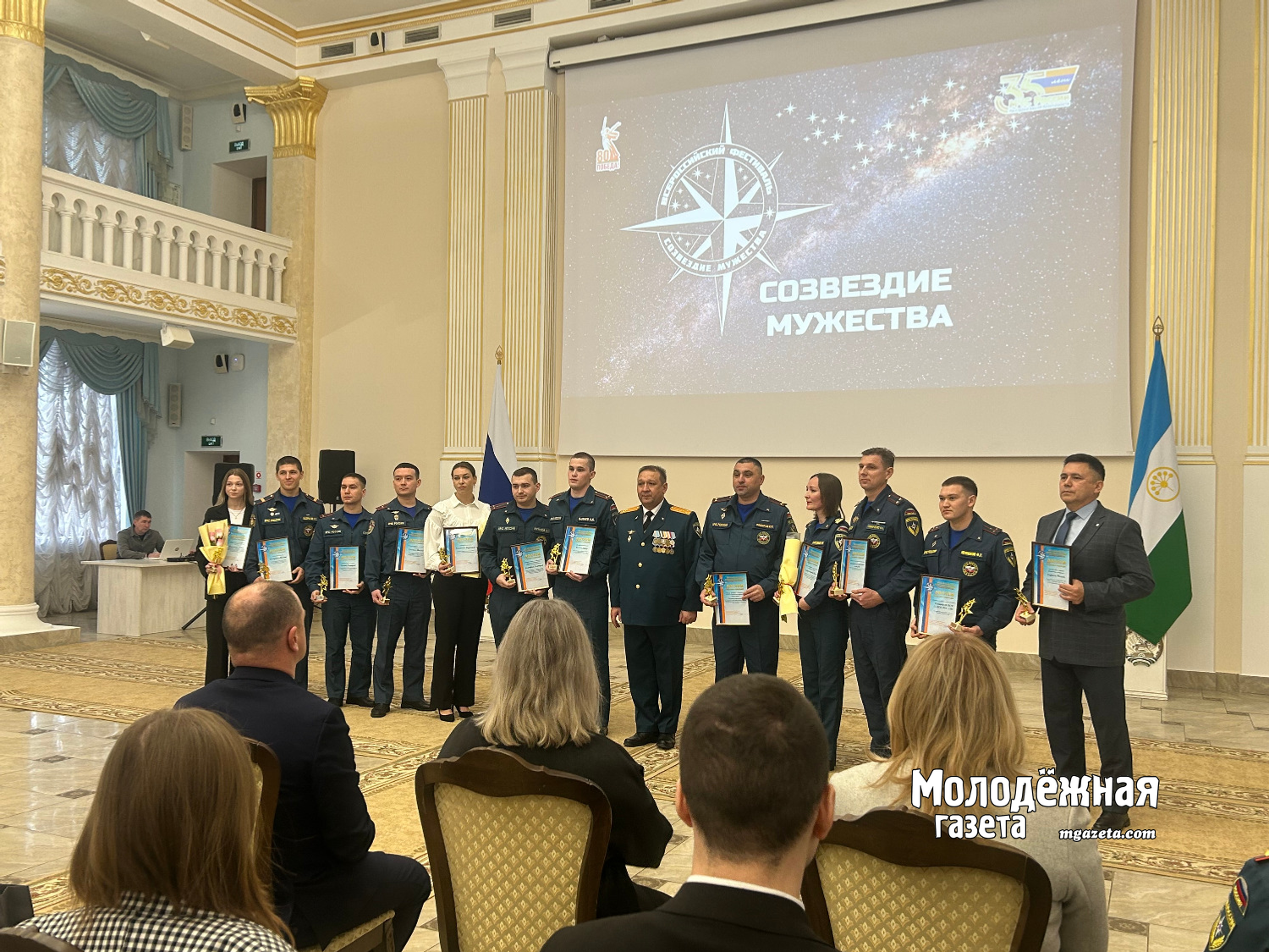 В рамках мероприятия наградили и победителей конкурса рисунков, посвященного 35-й годовщине МЧС России, отличившихся сотрудников ведомства, а также тех, кто не остался равнодушным к чужой беде. Например, сотрудник Стерлитамакского молочного комбината Евгений Яковлев в октябре 2024 года спас троих человек при пожаре в частном жилом доме в Стерлитамаке. Увидев, что горит баня и огонь перекинулся на жилой дом, он тут же поспешил на помощь. Женщину с двумя детьми удалось спасти.