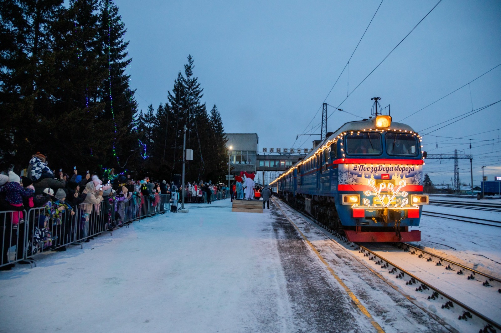 Поезд Деда Мороза – это празднично оформленная передвижная резиденция главного волшебника страны, который путешествует с остановками на крупных станциях. В состав поезда традиционно включены «вагон-приёмная», вагон «Сказочная деревня» для проведения игр и квестов, «вагон-сцена» и «вагон-кукольный театр» для представлений, «вагон-лавка» с северными сувенирами, «вагон-буфет» и «вагон-ресторан» для чаепитий, а также спальные вагоны для команды помощников Деда Мороза.