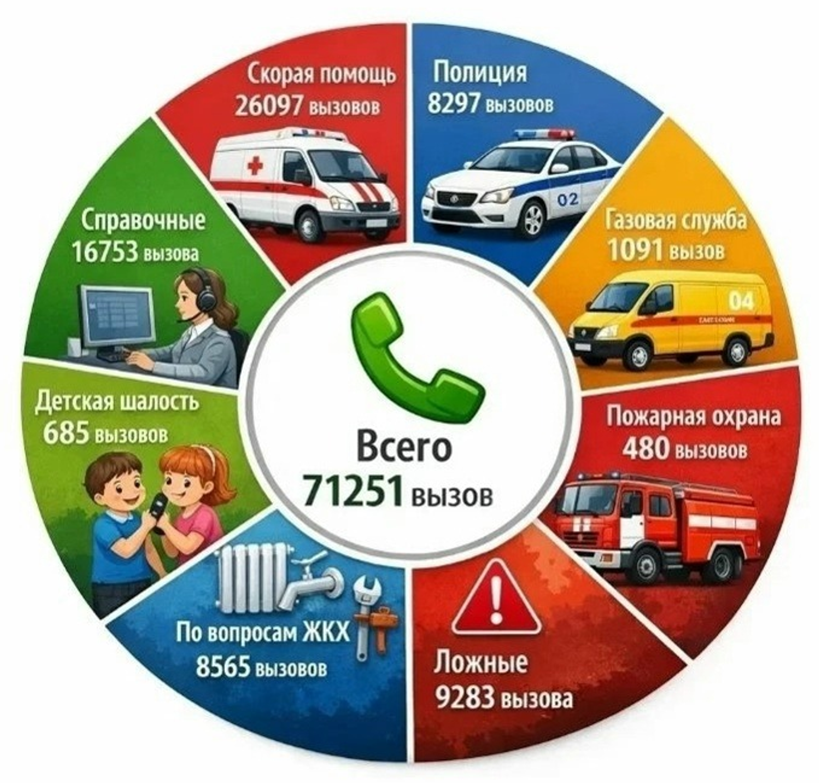 - Их труд — это гарантия того, что помощь придёт вовремя, а ваша безопасность — под надёжной защитой. Цифры говорят сами за себя: за прошедшие праздники в Центр обработки вызовов Системы-112 поступило более 70 тысяч обращений. Каждый звонок — это просьба о помощи или важное сообщение. В разрезе служб статистика следующая.