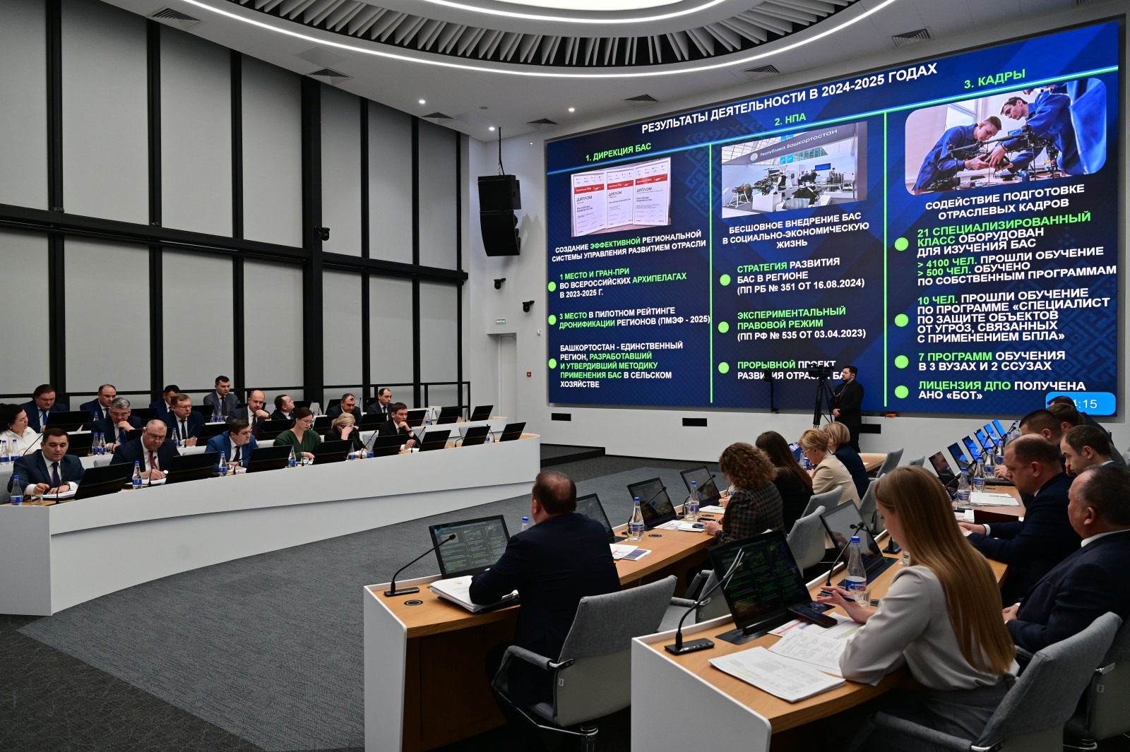 Как рассказал в своем докладе директор АНО «Беспилотные объединенные технологии» Марс Аминов, на сегодняшний день выполнены все поставленные государственные задачи: создана Дирекция БАС с участием министерств, вузов и предприятий, Башкортостан стал одним из центров компетенций по беспилотной авиации и радиоэлектронной борьбе, вошел в первую тройку рейтинга «дронофикации» регионов и занял гран-при и первые места на всероссийском форуме «Архипелаг». Еще одним достижением является утверждение методики применения БАС в сельском хозяйстве. При этом Башкортостан – это первый и единственный регион страны, разработавший подобный документ.