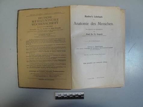 Пассажирка проследовала через «зеленый коридор», однако в ходе выборочного контроля инспекторы обнаружили в ее ручной клади старинный фолиант. Им оказался учебник по анатомии человека «Lehrbuch der Anatomie Abteilung 6/ Sinnesorgane Generalregister XI. Auflage» автора Rauber-Kopsch. Это 11-е издание шестого тома («Органы чувств») было выпущено в 1920 году в Лейпциге (Германия) типографией Georg Thieme.