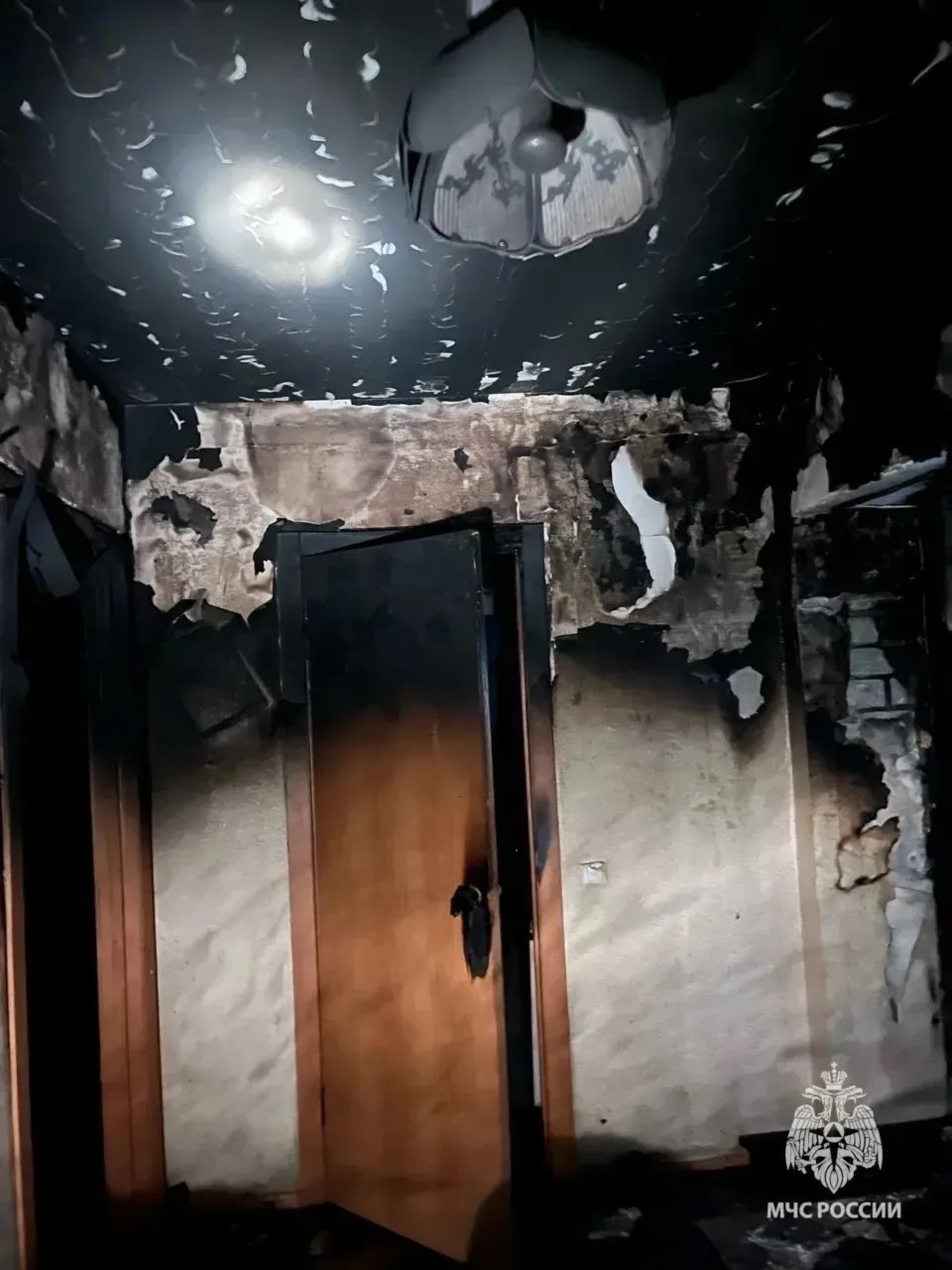 Огонь вспыхнул в трехкомнатной квартире, расположенной на четвертом этаже. В результате пожара повреждены стены, потолок и домашнее имущество в одной из комнат.