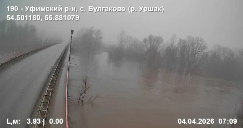 - на реке Уршак у села Булгаково Уфимского района, динамика уровня воды за сутки +41 см, текущий уровень 391 см, неблагоприятный уровень 612 см.